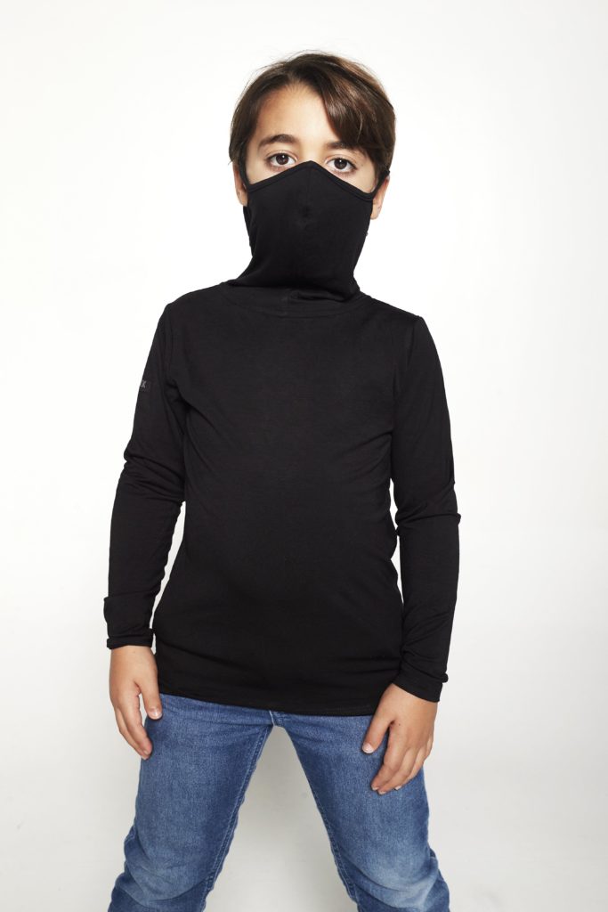 Shirt meets mask in the first ever shirt with an attached face covering! You can’t lose it, drop it, put it on backwards or forget it because it is all attached. Made with super soft luxury breathable fabrics (with a little spandex to keep its shape),it is styled to drape well with the mask either up or down and comes in a beautiful array of patterns and solid colors. Originally designed by a Mom of 3 for her kids…. the product is a SHMASH with all ages and can be found at