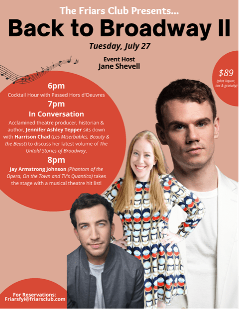 The historic Friars Club has reopened, and Tomatoes are invited to this terrific event featuring Jennifer Tepper, creative director of 54 Below who has produced over 3000 shows and has great stories to tell. For reservations email friarsfyi@friarsclub.com
