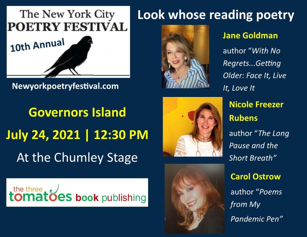 We are delighted that our three authors (The Three Tomatoes Book Publishing) are part of the 10th annual New York Poetry Society Festival on Governor’s Island. Get the details.