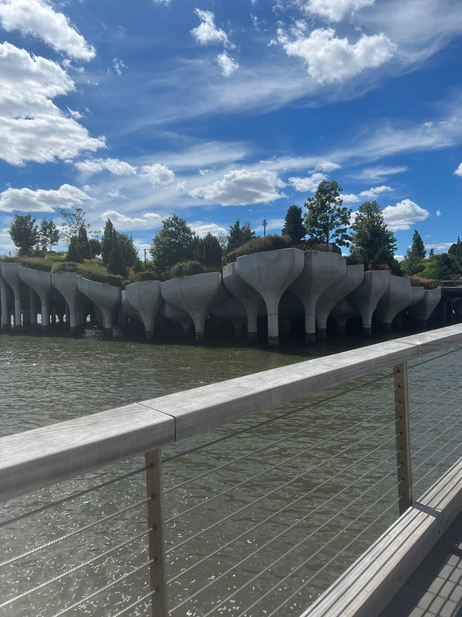 If you want a delightful afternoon, head to City Winery at Pier 57 on the Hudson for lunch and a glass of wine, and then stroll over to Little Island. We’ve been writing about Little Island since it opened a year ago, but we finally had a chance to visit. The views of NYC are spectacular.