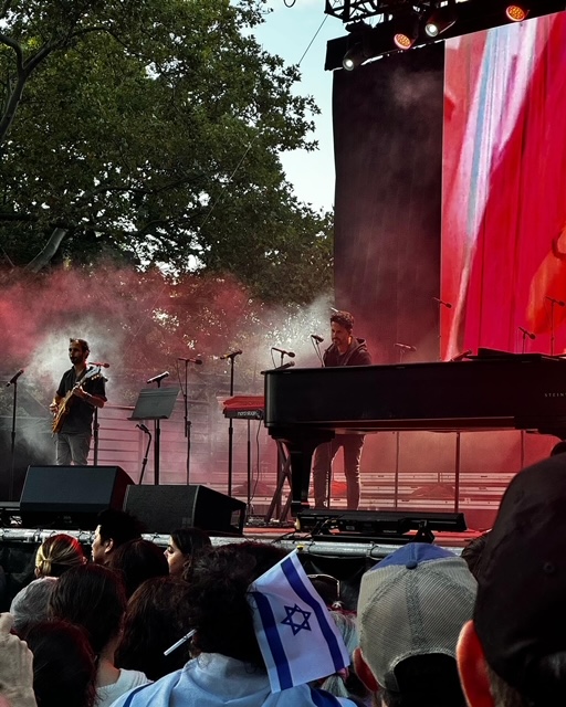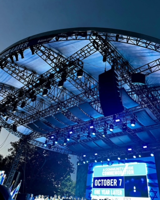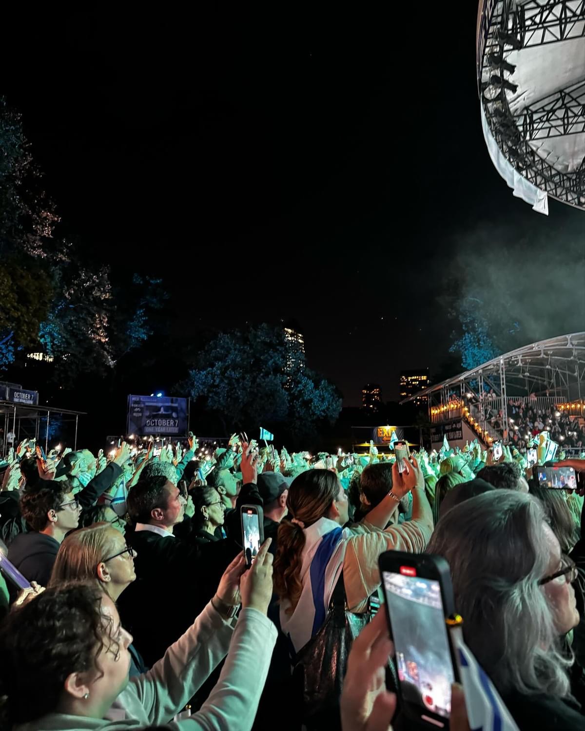 On Monday evening at New York’s beautiful Summer Stage Theatre UJA and Hostages and Missing Families Forum hosted a Community-Wide Commemoration October 7 One Year Later. There at dusk as a group, we mourned, remembered, sang, and sought to remain hopeful. It was a fitting and moving production that included, Nova Music Festival survivors, New York’s honored elected officials, and prayer with clergy representing many religions. High school choruses sang as the sun set and were followed by renowned performers David Broza, Regina Spektor and the Israeli Eurovision heroin Eden Golan, who passionately sang October Rain.