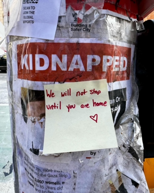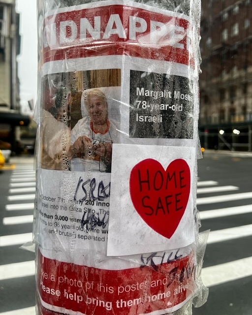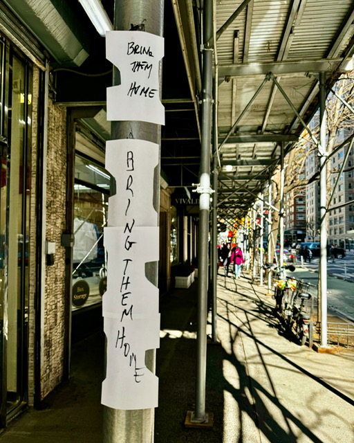 As the hostage release deal continues to be negotiated, I continue to bear witness and document the humanitarian effort world over. In my own New York neighborhood since October 7th, the lampposts have come alive with messages and pleas. The trees are screaming loud and clear. I take solace living in a socially active and relentlessly dedicated community, that speaks up for those who cannot.