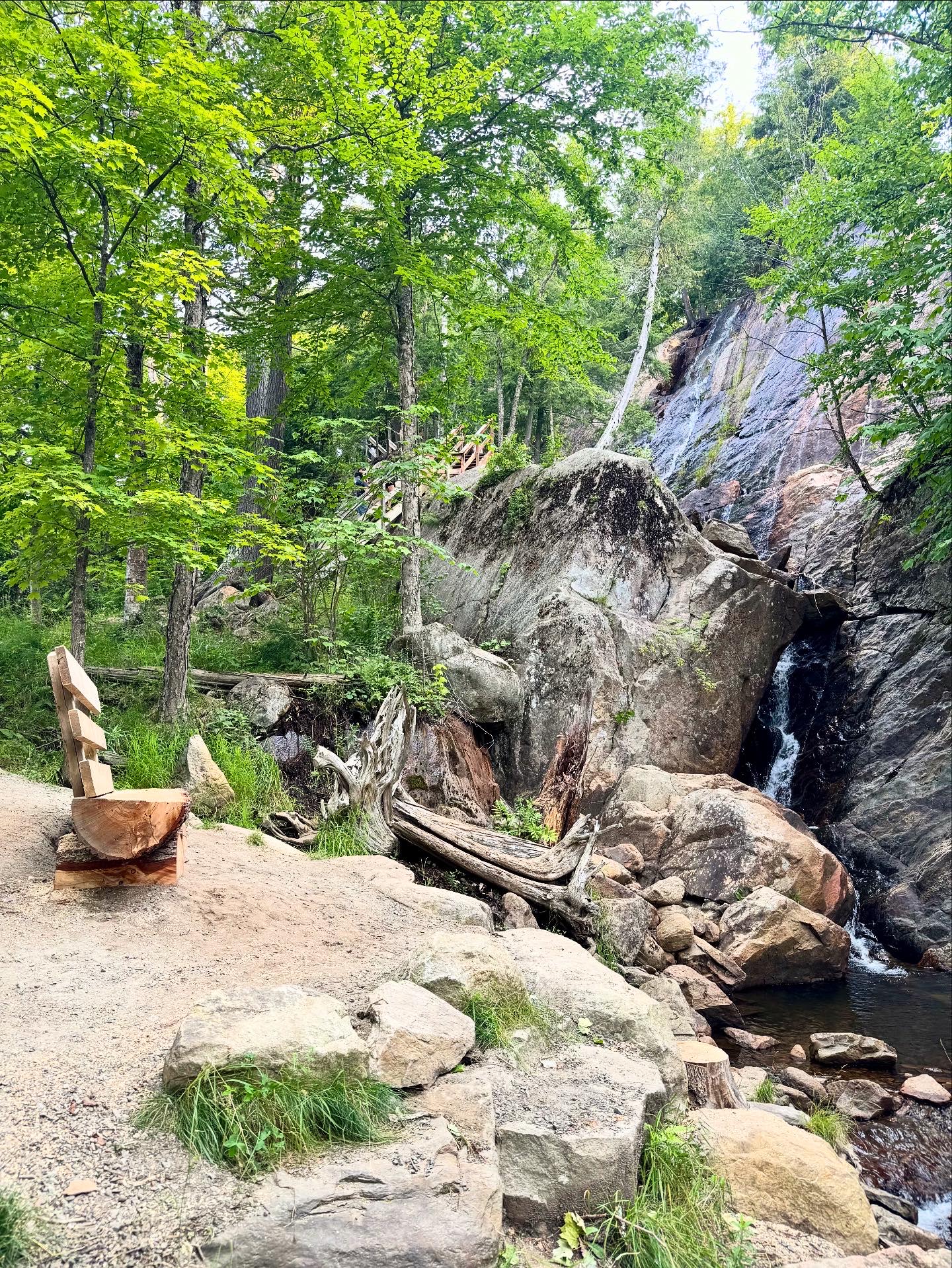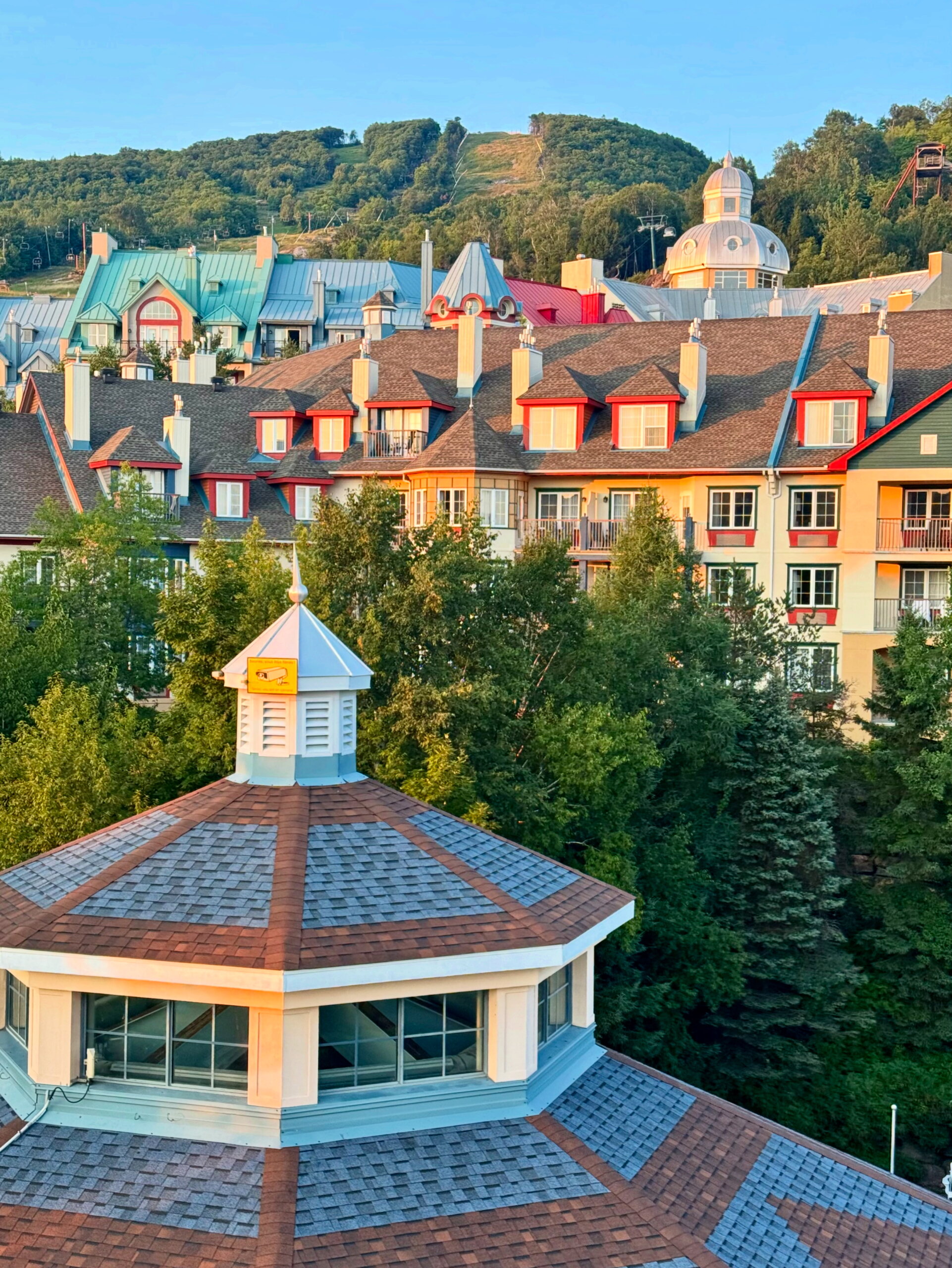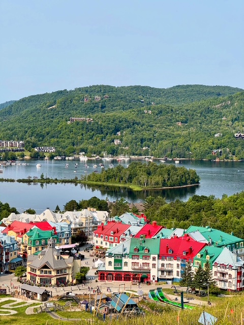 Last weekend to kick off my annual vacation at our summer cottage in Quebec, I spent one night visiting Mont-Tremblant in the Laurentians. Best known as a ski resort in the winter it was surely hopping with summer outdoor lakeside and mountainside activities. The name originates from the Algonquins who called it the “trembling mountain.” Today one can hike to find a multitude of serene waterfalls and spectacular views of the colorful village.