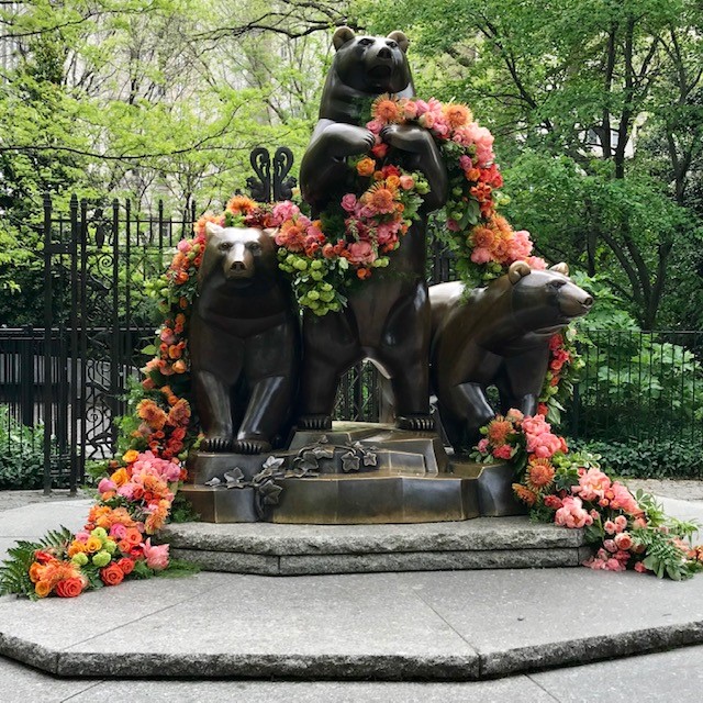 April showers bring May flowers all year round. The uber-talented florist Lewis Miller of Lewis Miller Design has been secretly creating sensational, sustainable floral designs in the dark of night. Like a gorilla artist he and his team often work overnight to create surprise and uplifting installations on the streets of New York City.