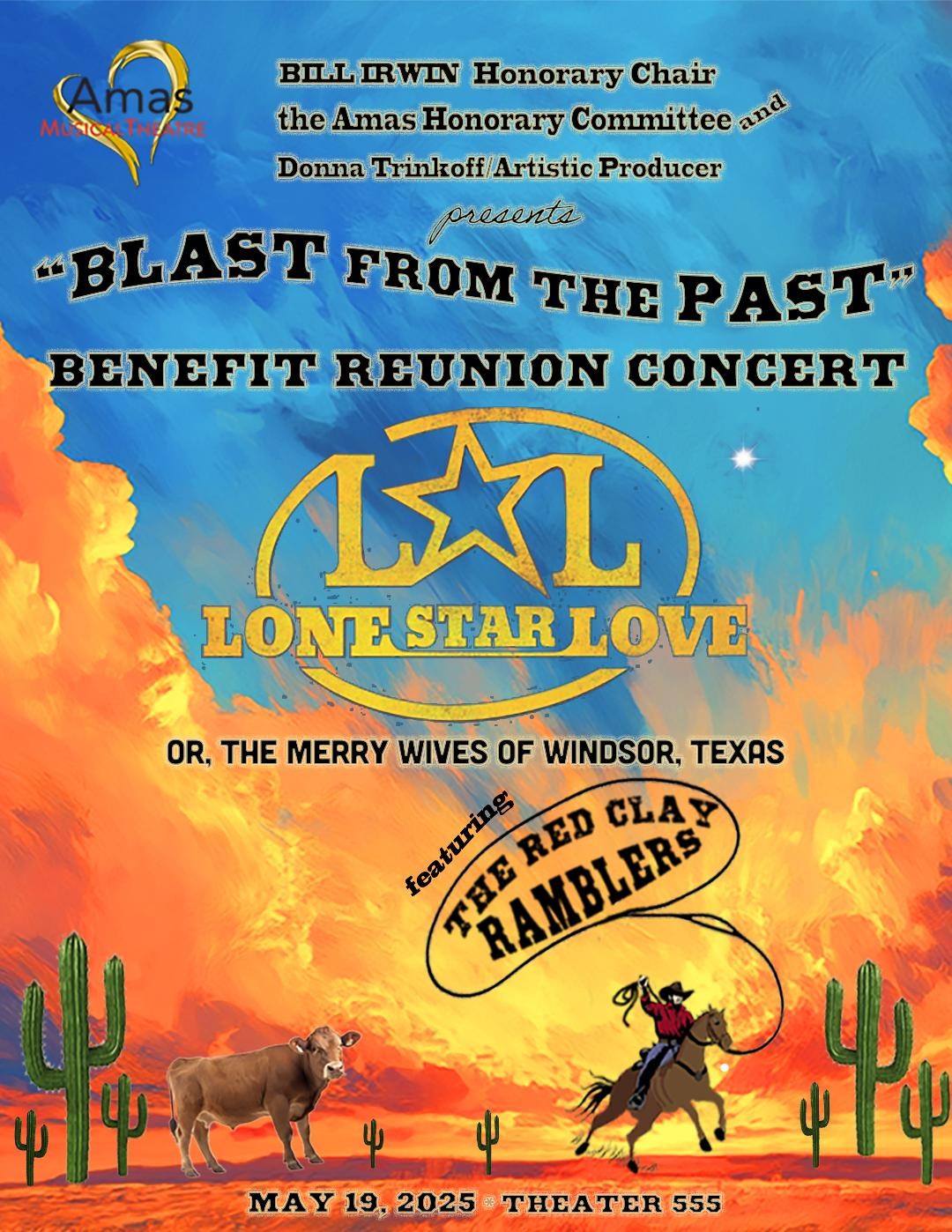 This will be an amazing night when friends and associates of Amas Musical Theatre gather to celebrate its 56th year of producing and developing musicals with a Reunion Concert of Lone Star Love, last seen in New York 20 years ago! Featuring an outstanding cast of 23 with the one and only Red Clay Ramblers, directed by four-time Tony-nominee Randy Skinner. And it’s all for a great cause! Proceeds from the evening go toward helping Amas to continue to develop new musicals and conduct vital education programs. GET THE DETAILS.