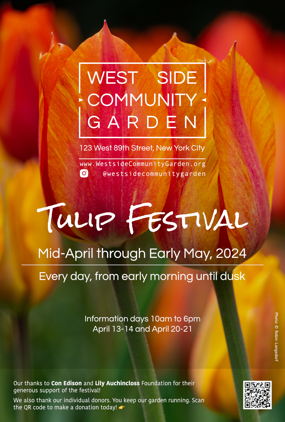 I don’t know why I didn’t know about the Tulip Festival before now, but it’s a great NYC story. The West Side Community Garden was founded in 1976 on a trash-strewn vacant lot on Columbus Avenue that had been slated for an urban renewal project. West Side Community Garden is committed to providing a beautiful, peaceful, green space in which everybody can relax. The only privately owned example of its kind in New York City, the garden is fully funded by grants and donations and run entirely by volunteers. Take a stroll and enjoy the beauty of spring! GET THE DETAILS.