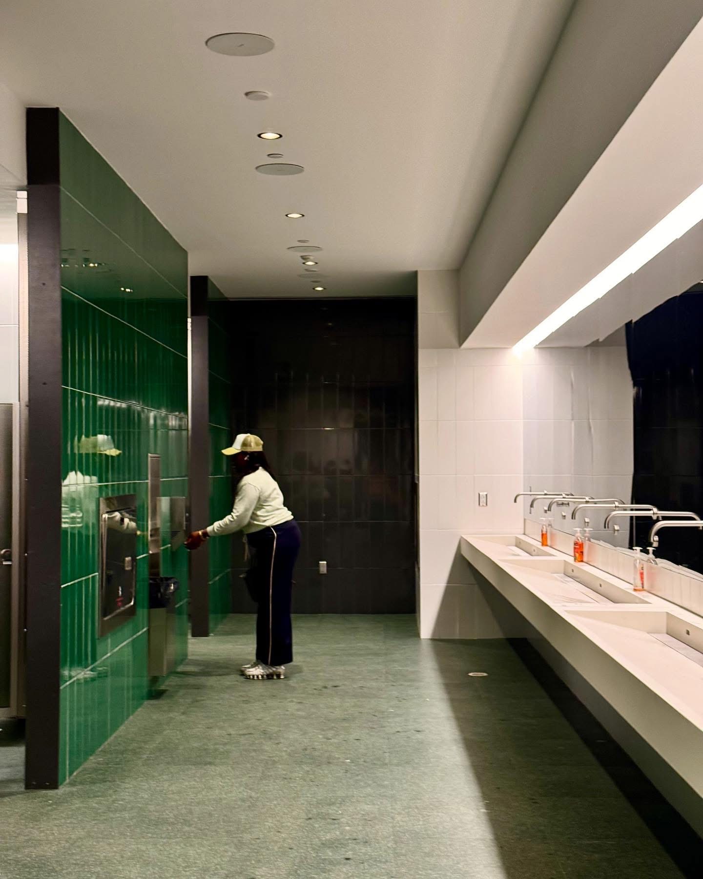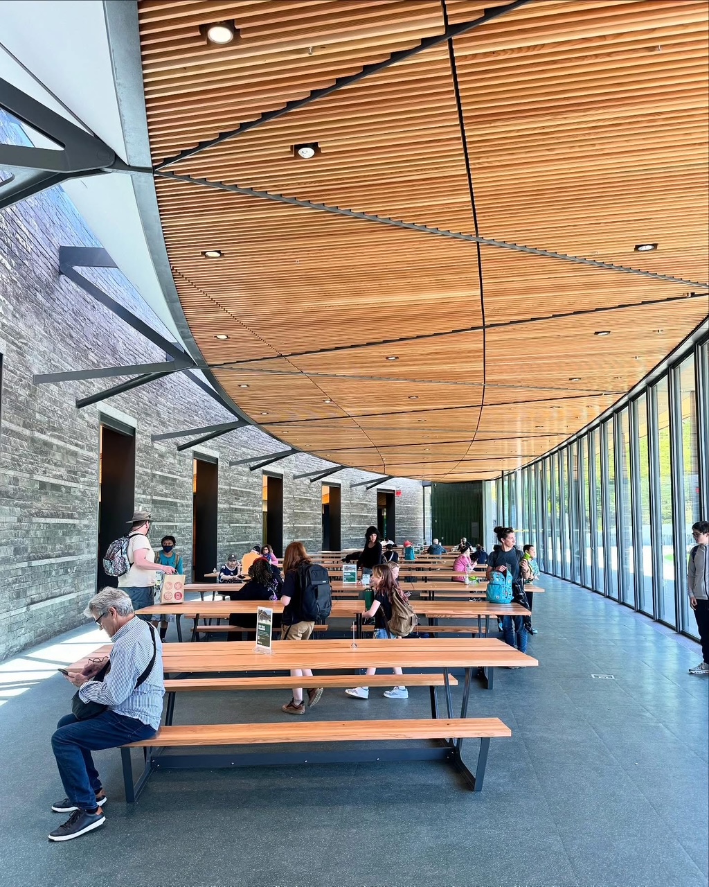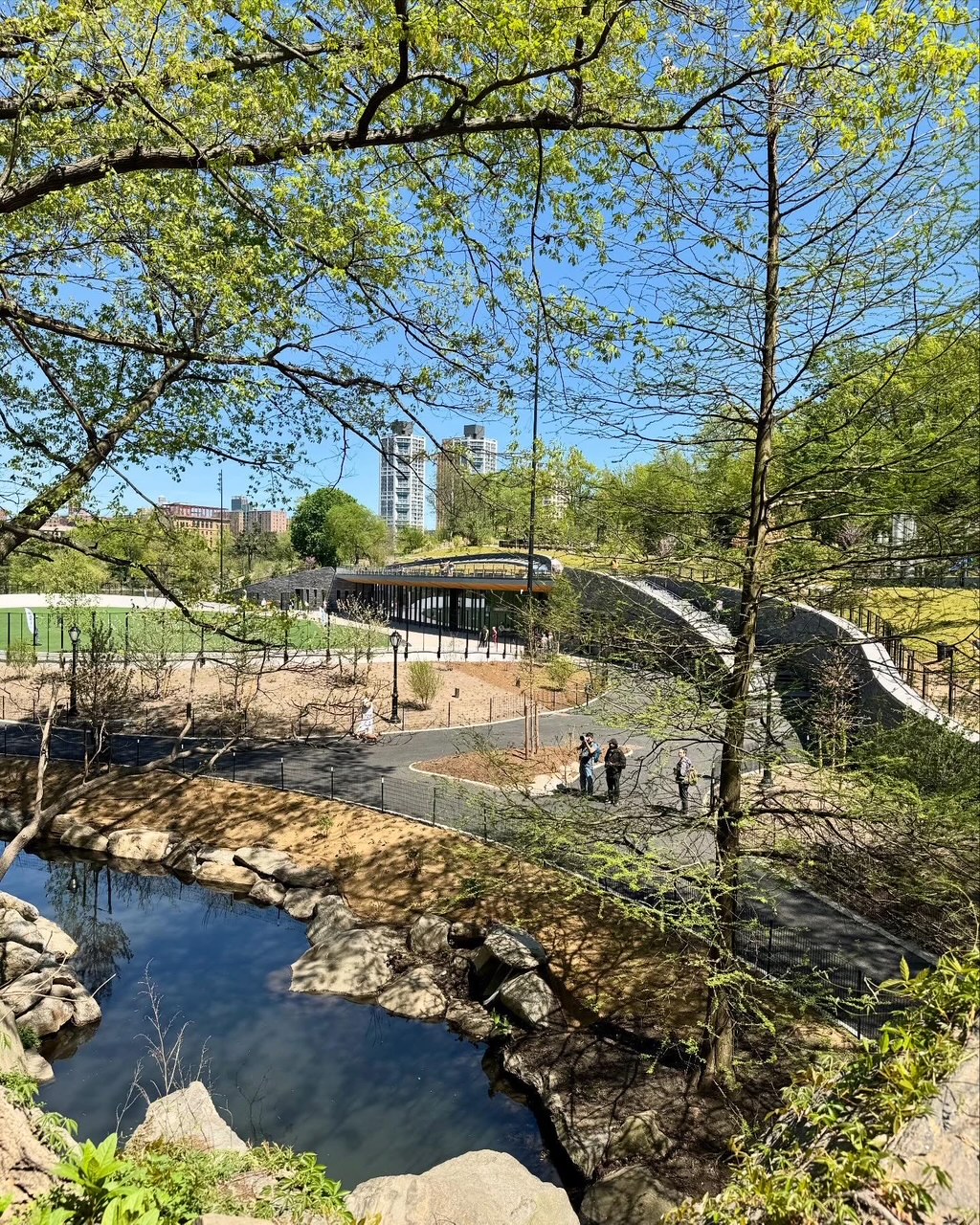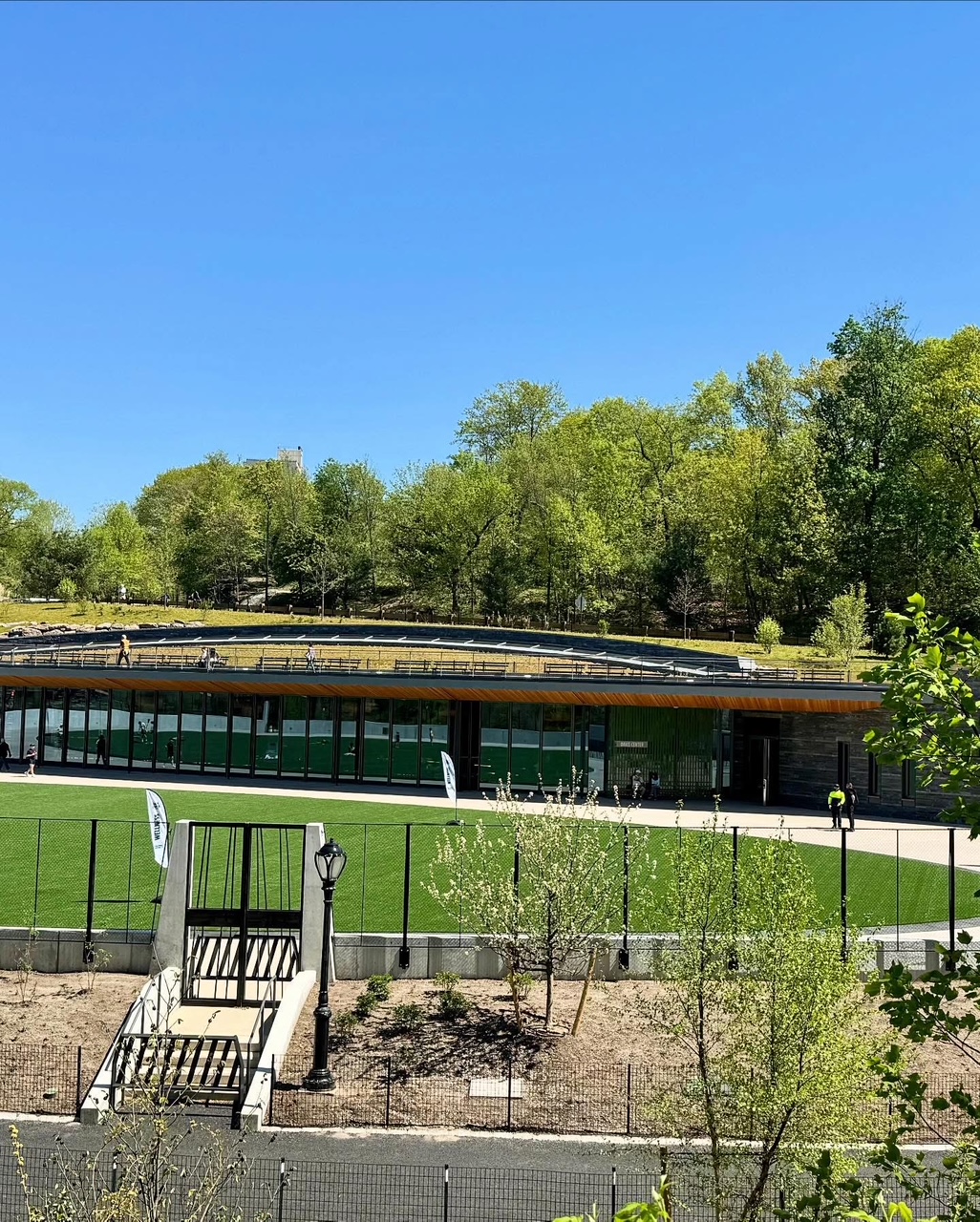 Adding a new pristine green space will keep the facility functional year-round. There is a beautiful building that answers to the incline and the ravine of the Harlem Meer landscape. My favorite aspects of this building are the natural resources chosen and the attention to the play of natural light.