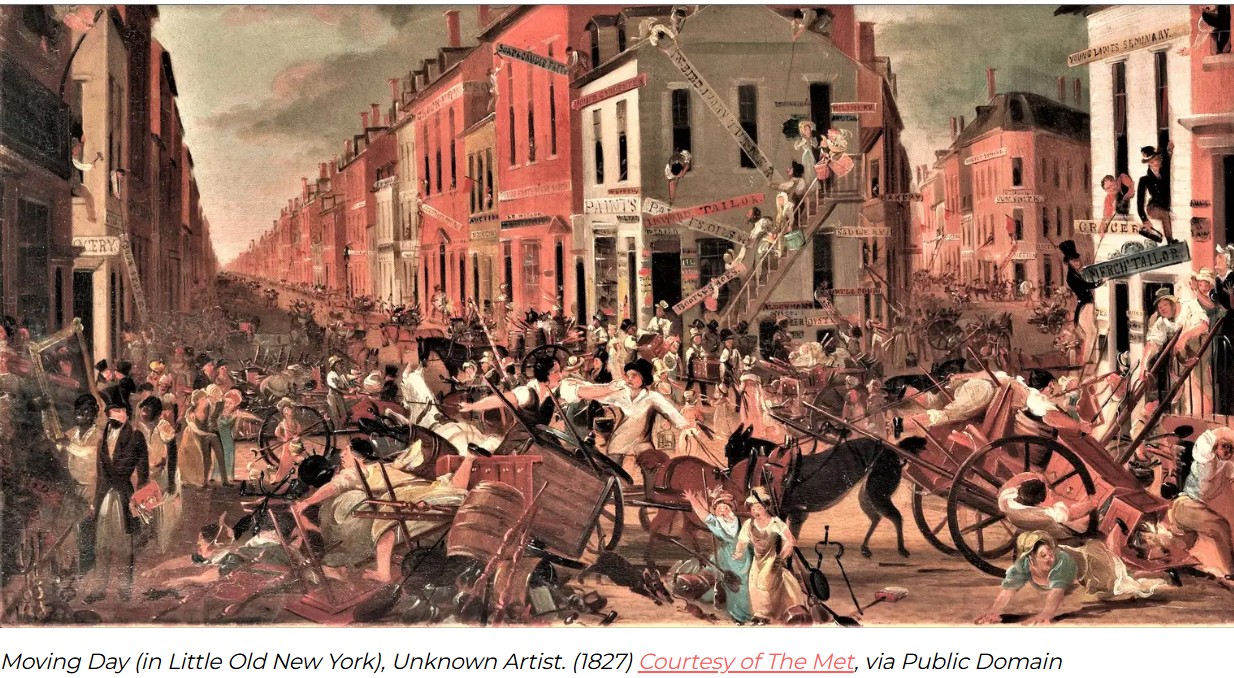 The origins of Moving Day are debated—some say it came from the Dutch tradition of verhuisdag, while others link it to English May Day customs. By the 1820s, it was so widespread that New York passed a law, making May 1st the default lease expiration date unless stated otherwise.