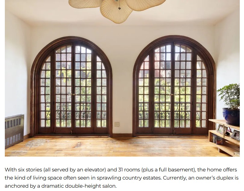 This article from 6SqFt got my attention. This 11,670‑square‑foot residence at 323 West 80th Street can be yours for $6.999,000. It is a striking showcase of Elizabethan Renaissance Revival architecture — a true urban mansion complete with an underground private garage, a gym, and a roof terrace.