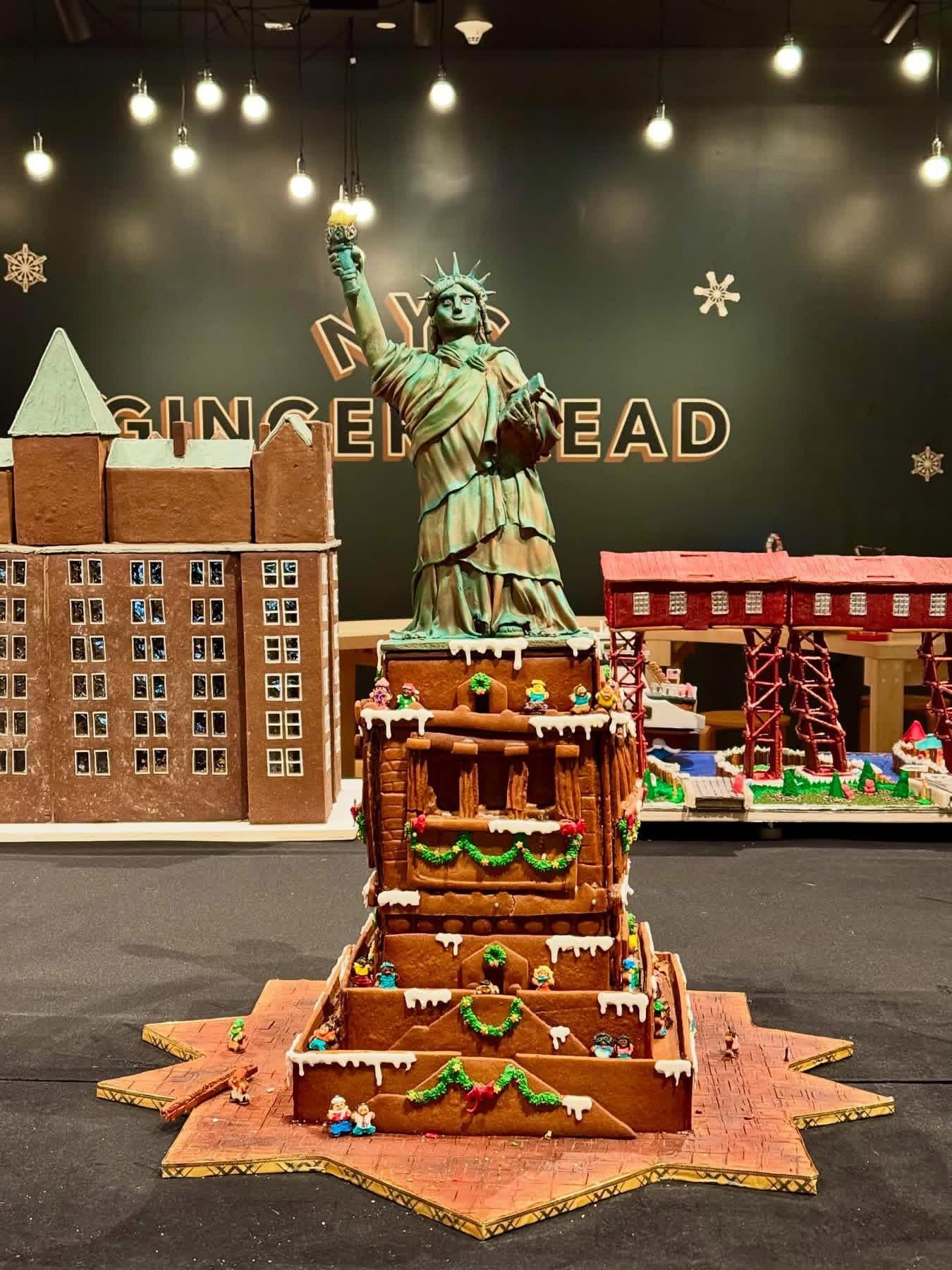 When you enter the gallery where the Museum of the City of New York displays some of the tastiest buildings, the smell of gingerbread transports you to Christmas past. Gingerbread NYC: The Great Borough Bake-Off features Big Apple bakers’ creations that celebrate iconic buildings and landmarks, and even include the classic New York breakfast, a bagel and coffee in the old school blue and white to-go cup! Visitors can cast votes for their favorites.