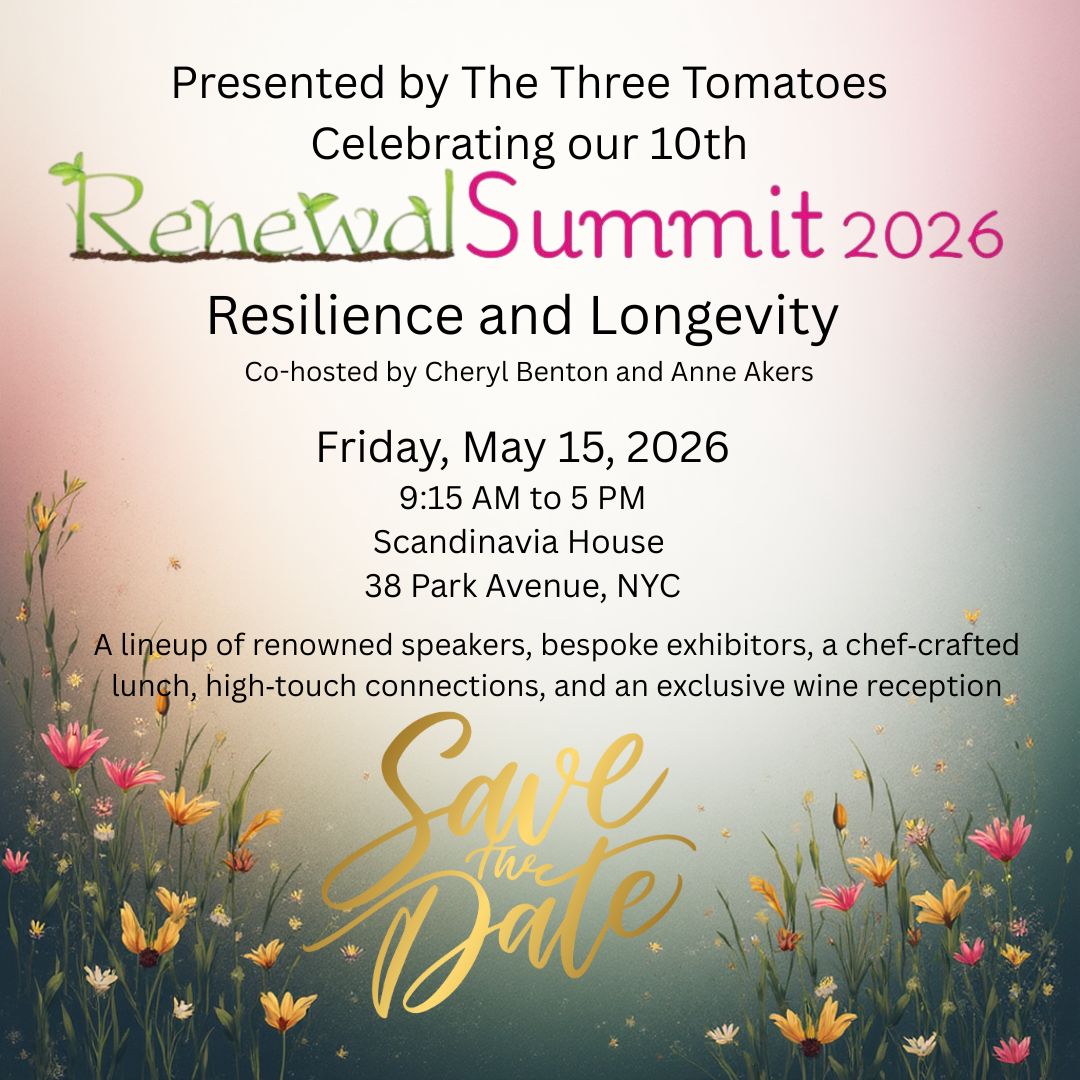 Cheryl Benton, aka the “head tomato” is founder and publisher of The Three Tomatoes, a digital lifestyle magazine for “women who aren’t kids”. Having lived and worked for many years in New York City, the land of size zero twenty-somethings, she was truly starting to feel like an invisible woman. She created The Three Tomatoes just for the fun of it as the antidote for invisibility and sent it to 60 friends. Today she has thousands of friends and is chief cheerleader for smart, savvy women who want to live their lives fully at every age and every stage. She is the author of the novel, "Can You See Us Now?" and co-author of a humorous books of quips, "Martini Wisdom." Because she's lived a long time, her full bio won't fit here. If you want the "blah, blah, blah", read more. www.thethreetomatoes.com/about-the-head-tomato