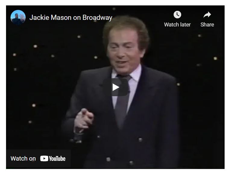 The beloved Jackie Mason recently died, and our Broadway Babe (Randie Levine Miller) unearthed his Tony and Emmy winning show, “The World According to Me.” And she shares a wonderful anecdote about chatting with him only a week’s before he died. And there’s more: a fabulous Liza in concert, Guys and Dolls behind the scenes, a classic 1950s TV show starring Shirley Booth as Pearl Mesta. Read more.