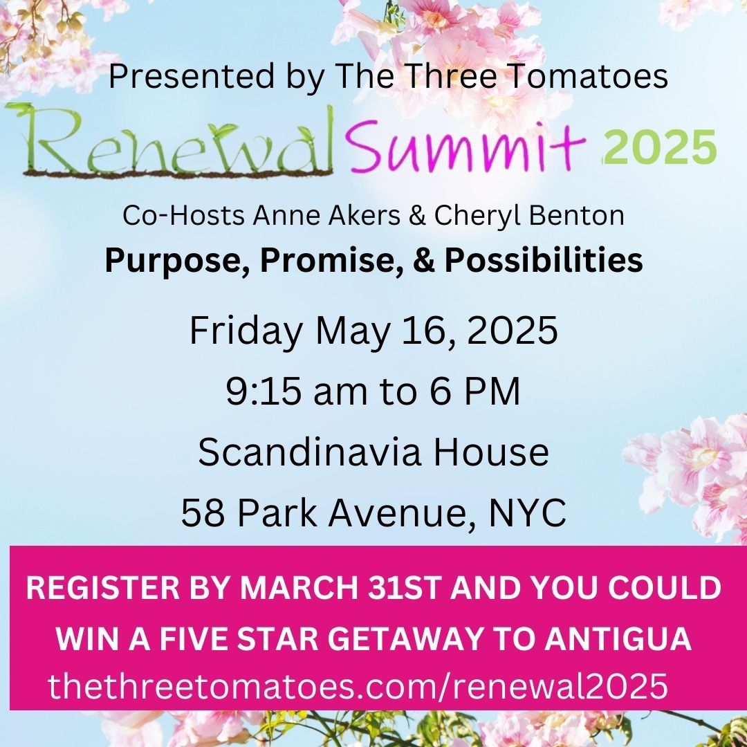 Cheryl Benton, aka the “head tomato” is founder and publisher of The Three Tomatoes, a digital lifestyle magazine for “women who aren’t kids”. Having lived and worked for many years in New York City, the land of size zero twenty-somethings, she was truly starting to feel like an invisible woman. She created The Three Tomatoes just for the fun of it as the antidote for invisibility and sent it to 60 friends. Today she has thousands of friends and is chief cheerleader for smart, savvy women who want to live their lives fully at every age and every stage. She is the author of the novel, "Can You See Us Now?" and co-author of a humorous books of quips, "Martini Wisdom." Because she's lived a long time, her full bio won't fit here. If you want the "blah, blah, blah", read more. www.thethreetomatoes.com/about-the-head-tomato