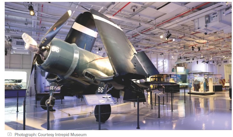 The Intrepid Museum in NYC has unveiled an impressive new permanent exhibit that showcases the history of the USS Intrepid and its crew during World War II. A highlight of the exhibit is the fully restored FG-1D Corsair fighter-bomber, a legendary WWII aircraft that was frequently flown from the Intrepid’s flight deck. This particular Corsair is one of the few remaining intact models worldwide and has been meticulously restored to preserve its historical significance. The exhibit also features over 50 never-before-seen artifacts, oral histories from crew members, and interactive displays that provide a deeper understanding of life aboard the aircraft carrier. Visitors can explore personal stories, including those of pilots like Alfred Lerch, who earned “ace in a day” status, and Loren Isley, whose tragic first combat mission is commemorated through artifacts and letters. GET THE DETAILS.