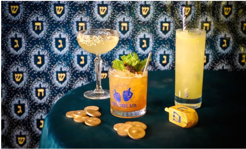 Well, it’s about time. NYC ‘s first holiday Hanukkah-themed bar arrives on December 13. Maccabee Bar will open in the Ollie West Village at 64 Downing Street by Varick Street. It’s the brainchild of award winning bartender Naomi Levy opened Maccabee Bar in Boston in 2018, when she noticed how many Christmas themed-pop up businesses there would be during the holidays, but not the same amount for Hanukkah.