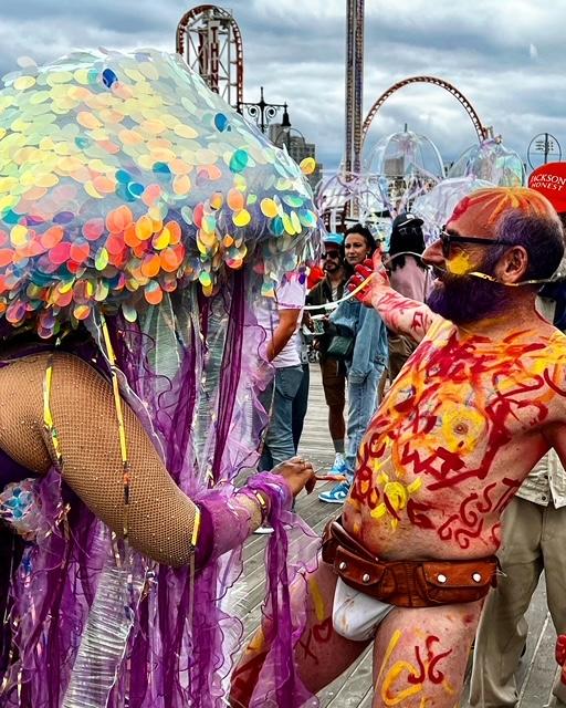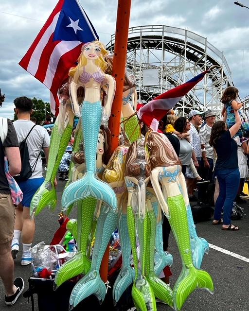 Our roving photographer, Nicole Freezer Rubens, writes: “Last Saturday I checked the 40th annual Mermaid Parade in Coney Island off of my bucket list. It is the largest parade in the United States with 3,000 participants and up to 800,000 spectators gathered in attendance on the Brooklyn seashore. The parade date is based on the summer solstice and honors the free spirit of both the summer season and the marchers who are dressed in most intricate and artistic marine themed costumes. It is known that partial nudity always trickles though the celebrant’s outfits.
