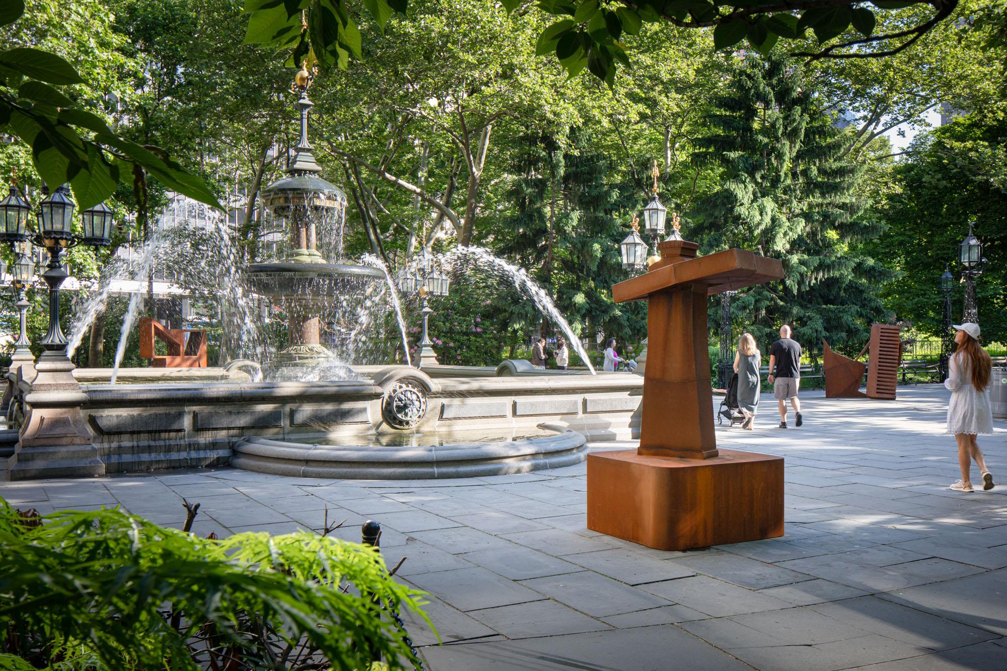 Head to City Hall Park to see an amazing art exhibition, Life in the Abstract, by artist Wyatt Kahn. Presented by the Public Art Fund it features seven vibrant rust red Cor-Ten steel artworks to City Hall Park for Khan’s first exhibition in public space.