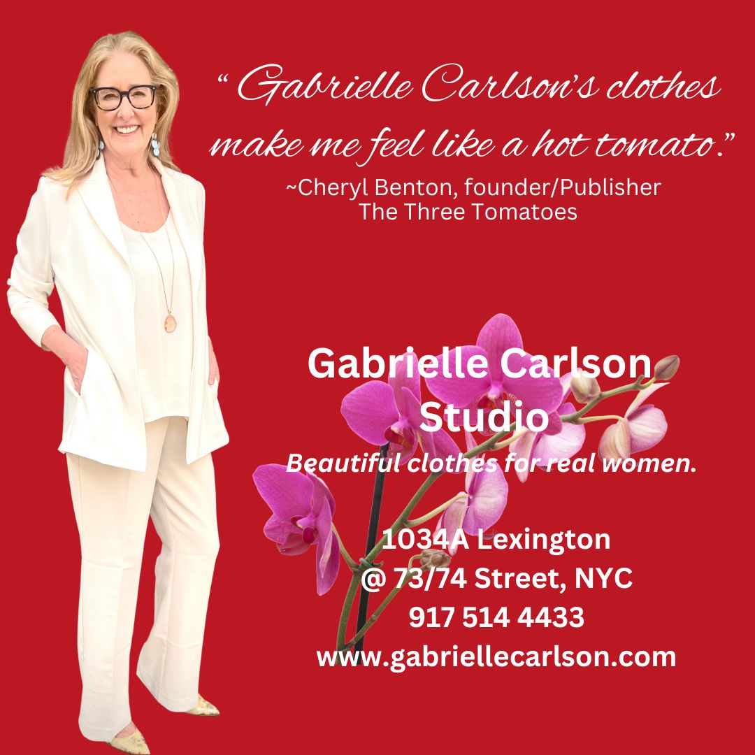 Yep, I’m a member of the Gab fan club and I have been for years. Why do we all love her? She makes us all feel and look beautiful with her lush fabrics, elegant and classic styles, and on-site tailoring. I have worn this white blazer and satin top in so many different ways – white blazer with black slacks, satin top with black blazer, and I always feel so put together. But the best part is just getting to know Gab herself.