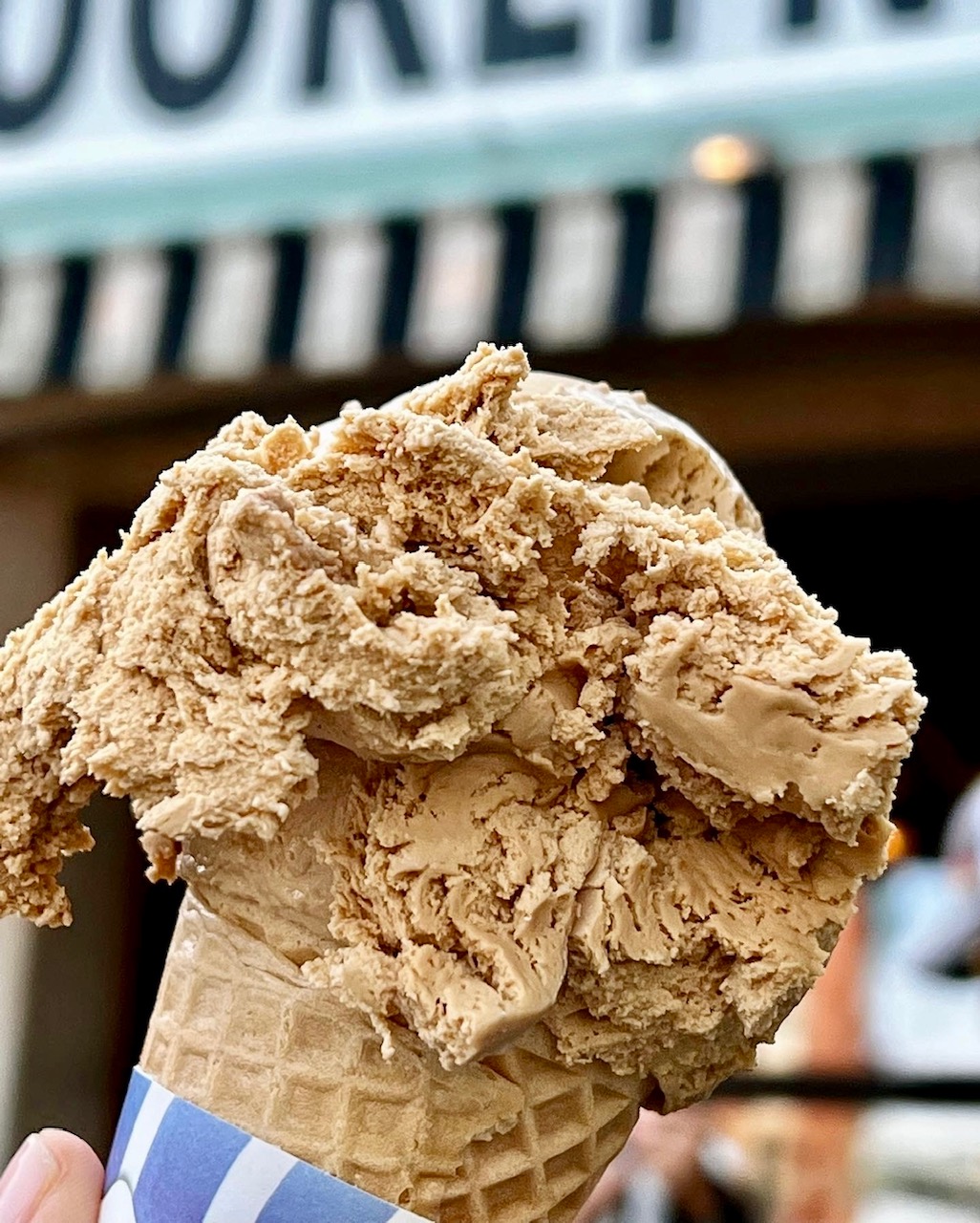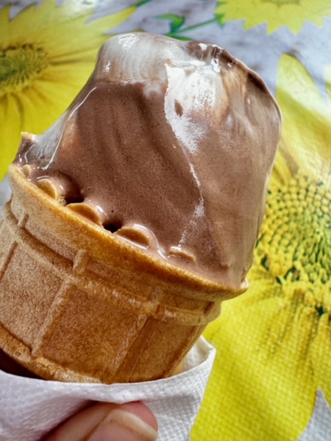 I do favor a cone, be it sugar, wafer or waffle. I wait to get down to that very first bite where the scoop meets the rim and the combined crunch is a symphony in my ears.