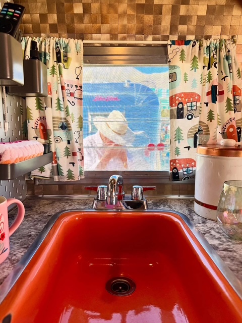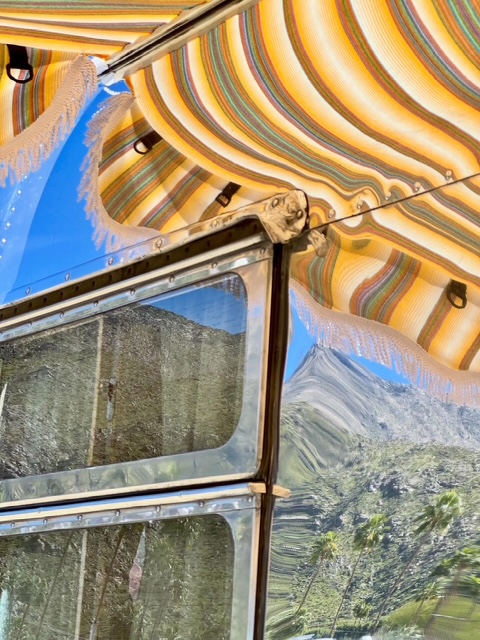 The owners of each vehicle were stationed outside their doors to usher you inside their pride and joy. Their exuberance was the perfect welcome mat! The color palettes were joyful an exquisite way to embrace some very small spaces that contained complexly designed living rooms, dining rooms, kitchens, bedrooms and baths, all scaled down for travel and function. The common thread through all of the trailers we toured is that they shared storied, well travelled pasts and an obvious sprit for further future adventure.