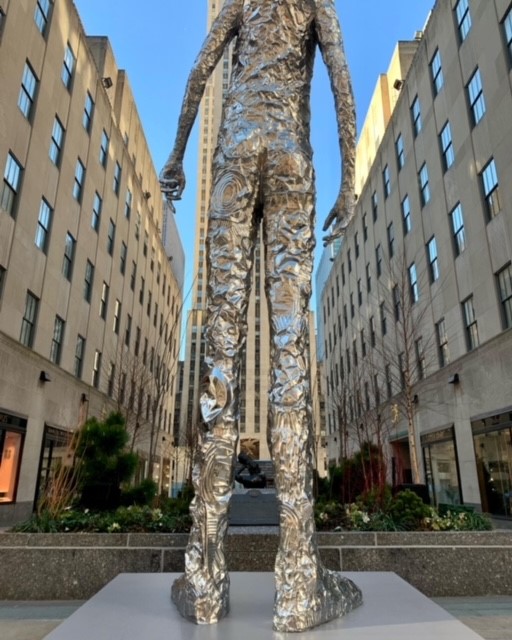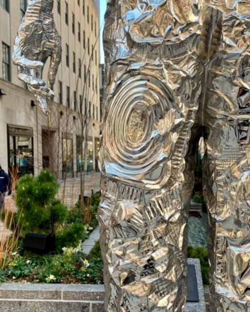 Tom Friedman’s “Looking Up” sculpture cast from crushed aluminum foil pans at Rockefeller Center’s Channel Gardens.