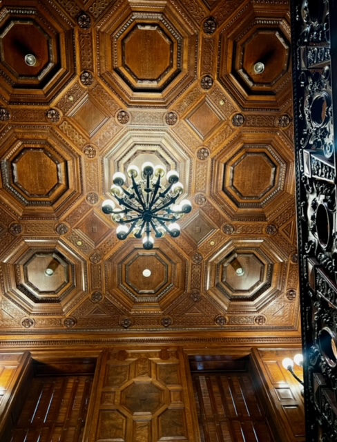 The museum itself is a great moody setting in contrast to her vivacious approach. Once the mansion of Andrew Carnegie, the grand Georgian building is an intriguing backdrop for a design museum. The intricate carvings that abound are as detailed as the combination of patterns and threads used in Liebes fabrics.