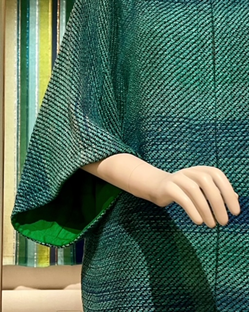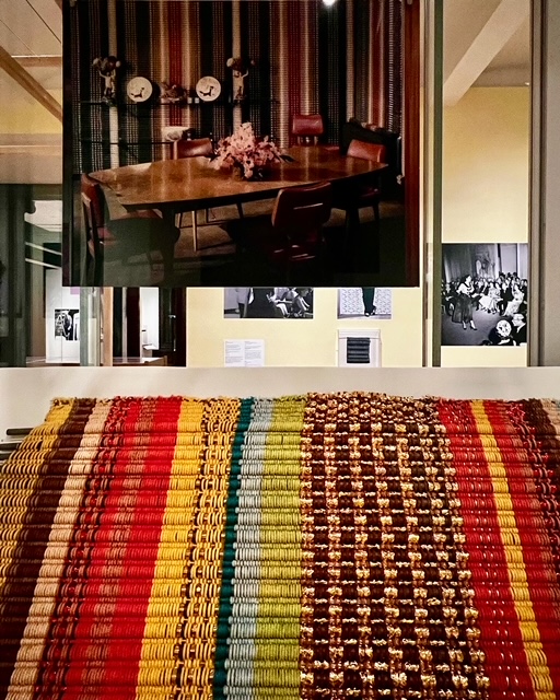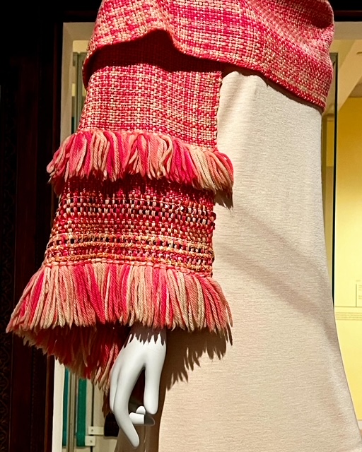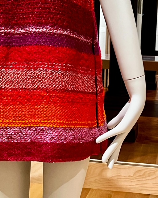 While in college to become a teacher, she bought a loom and taught herself how to weave. With studios in San Francisco and New York, Liebes rose to become a cutting edge textile designer and a shrewd business woman, operating from 1930 to 1972. As one can see through the comprehensive exhibit, she used bright colors, rich textures and lots of lurex and synthetic materials to make her creations shine, and establish her style, coined the “Liebes look”.