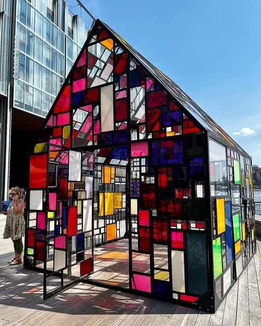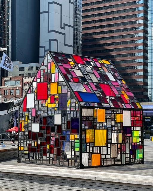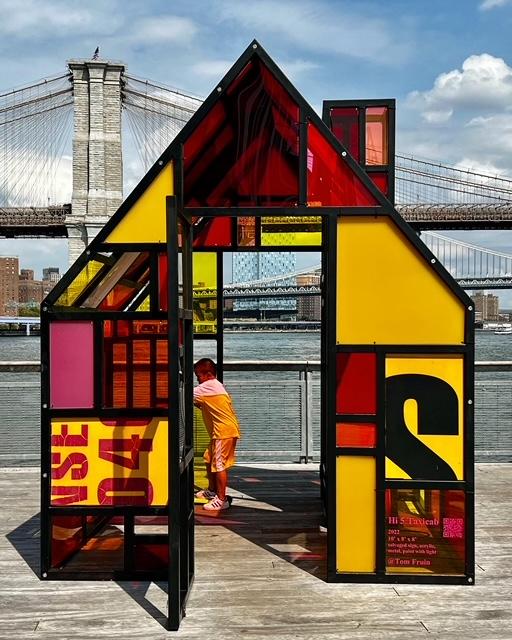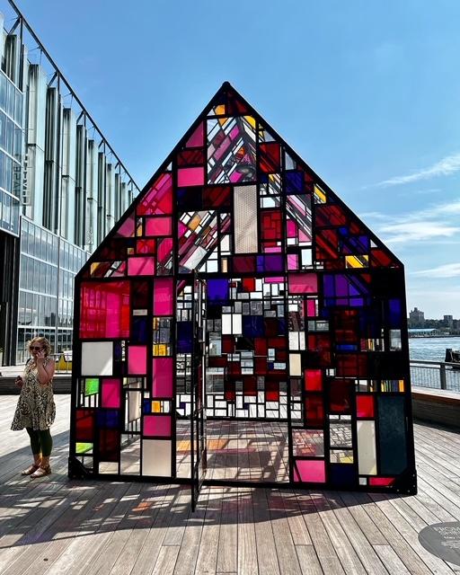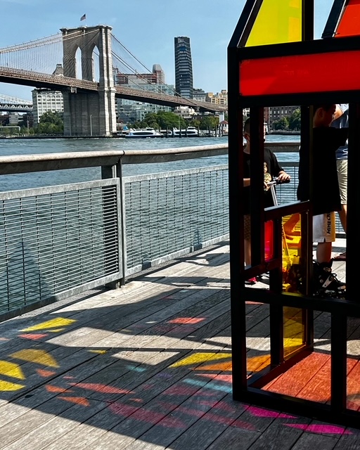 She writes: These are house like structures inspired by iconic water towers. In From Sea To Shining Sea, on view all summer at The South Street Seaport waterfront, Kolonihavehus, his original work in the series from 2010, and Hi 5 Taxi Cab the most recent, glowed colorfully all summer bookending his presence in the New York City landscape. Viewers could step inside the structures which looked different at different times of the day and in different weather. I find his work very inviting and I feel like I’ve stepped inside a new kaleidoscope every time. These two houses have come down but two other classic Tom Fruins remain to be seen in Brooklyn Bridge Park and in Dumbo. Please look for an illuminated sparkling colorful water tower on the rooftop as you drive on the BQE! Nicole is the author of The Long Pause and the Short Breath. Follow her on Instagram@nfrconsult.