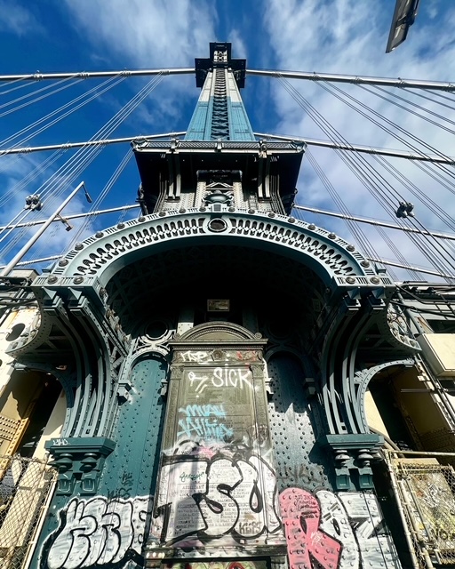 While today the bridge is gritty and covered in colorful graffiti, it is still a thing of beauty. By the time I was suspended smack between Brooklyn and Manhattan, taking in all the glory above and below, I was thankful that the F train was out, and greatly enjoyed the glory of NYC from a new high.