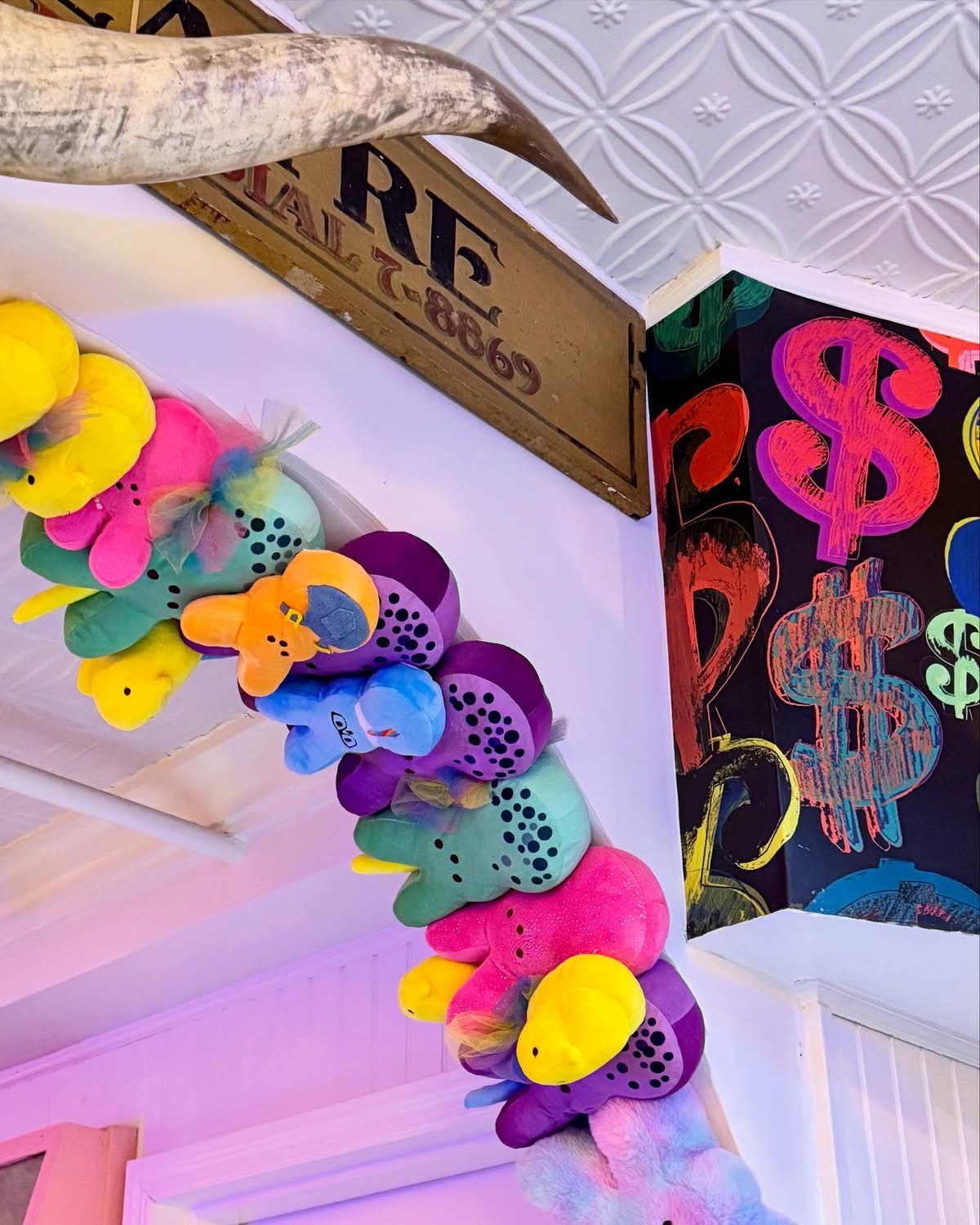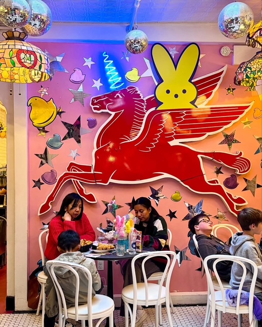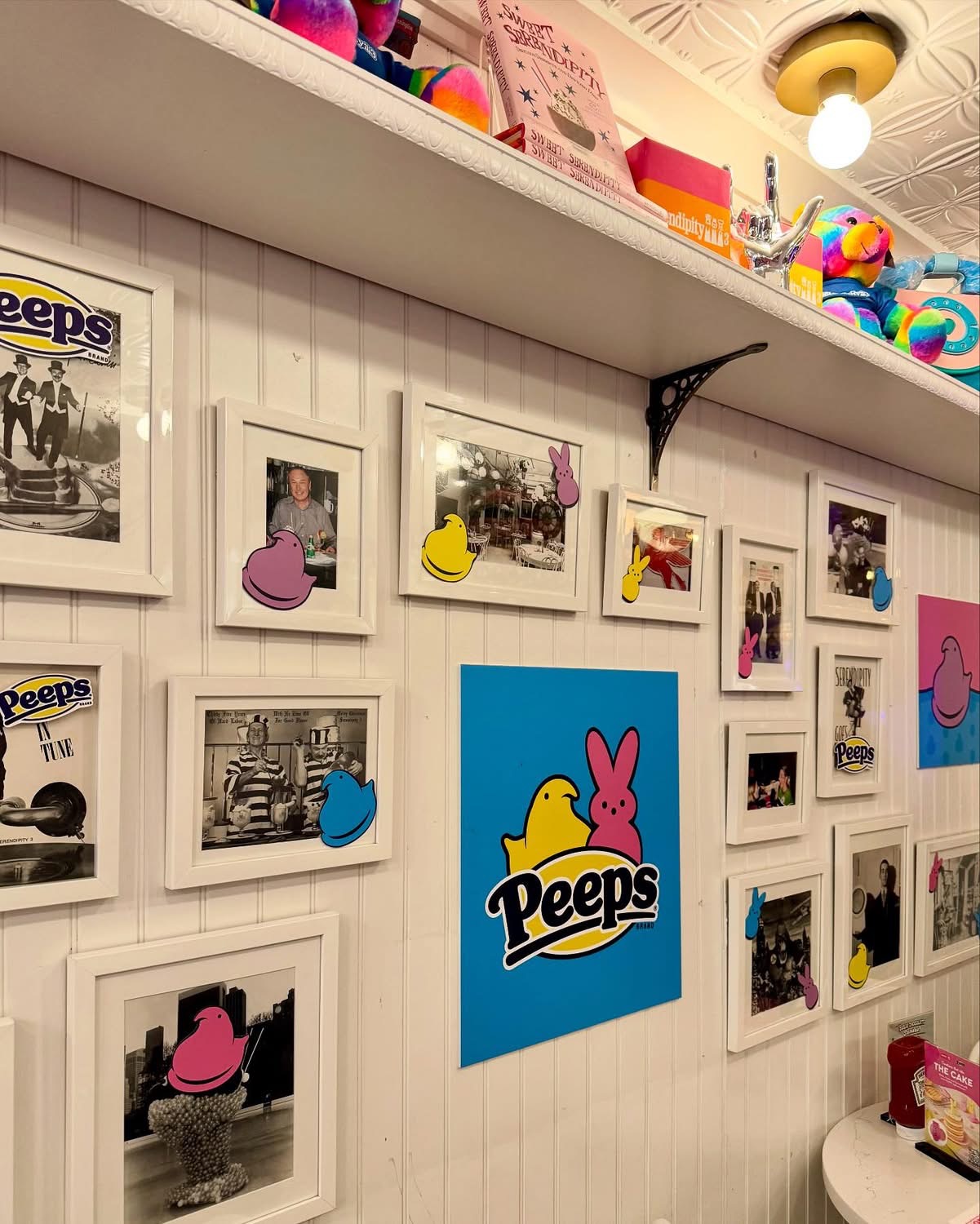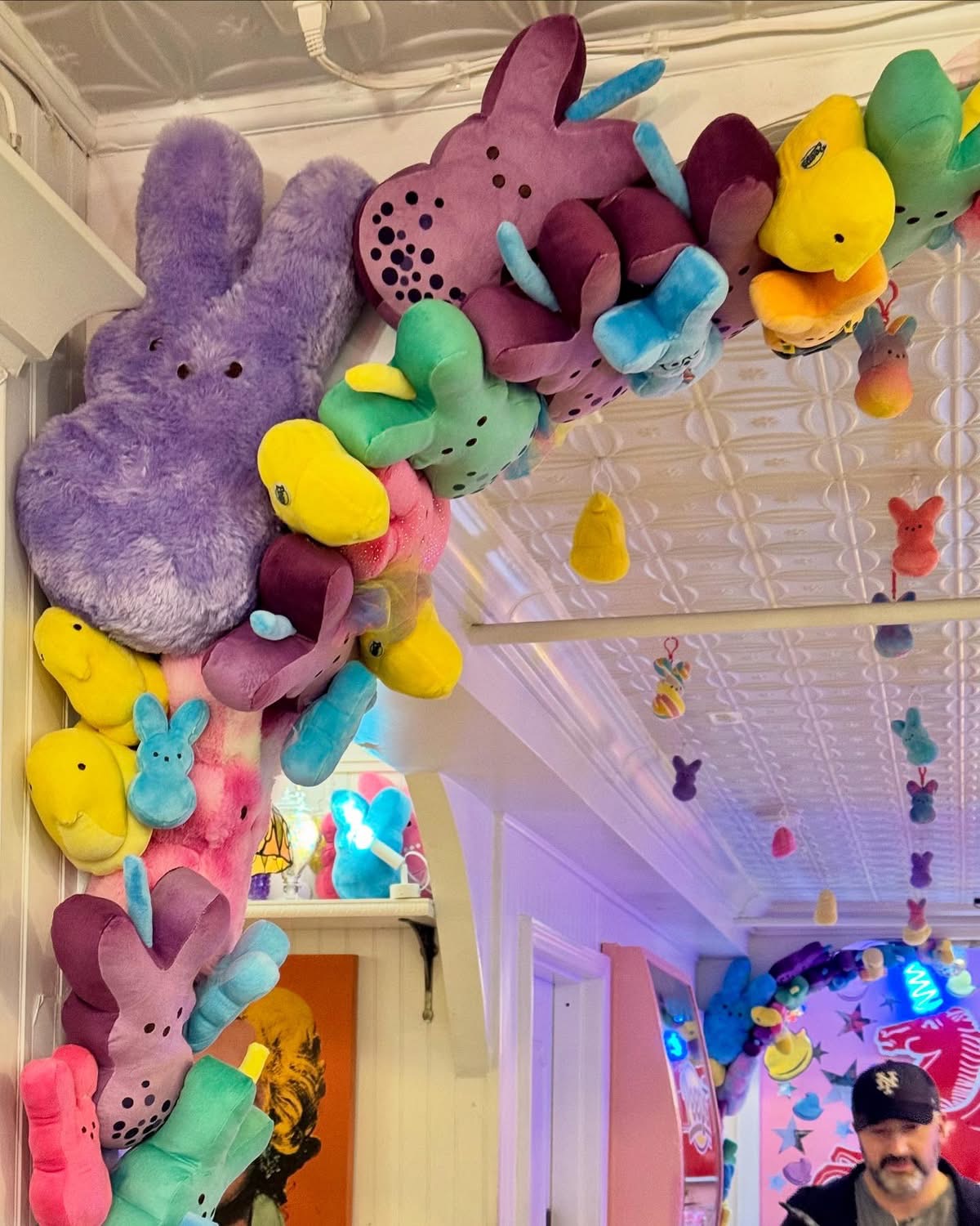The adored, brightly colored marshmallow candy bunnies and chicks have spread out throughout the building exterior, dining room, and menu, adding a festive Easter holiday vibe to the kitschy, retro interior. The atmosphere was designed to satisfy a sweet tooth, make people happy, and of course provide ample instagram backgrounds for endless adorable photos.