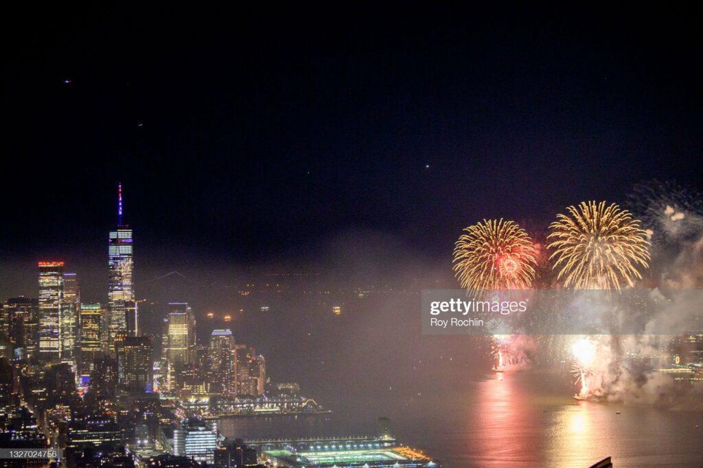 NEW YORK, NEW YORK – JULY 04: A view of the fireworks during the Edge at Hudson Yard’s 4th of July Celebration at Edge at Hudson Yards on July 04, 2021 in New York City. (Photo by Roy Rochlin/Getty Images for Edge at Hudson Yards)