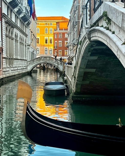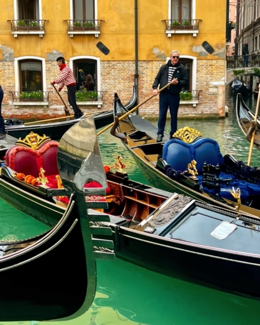 The symbolic image of a Venetian gondola is romanticized for good reason. Watching its unique aerodynamic structure sail along the busy canals reminds me of watching minnows sleekly swimming in groups but never crashing. It is simply mesmerizing to watch them glide and seamlessly traverse through the ancient canals of Venice. “