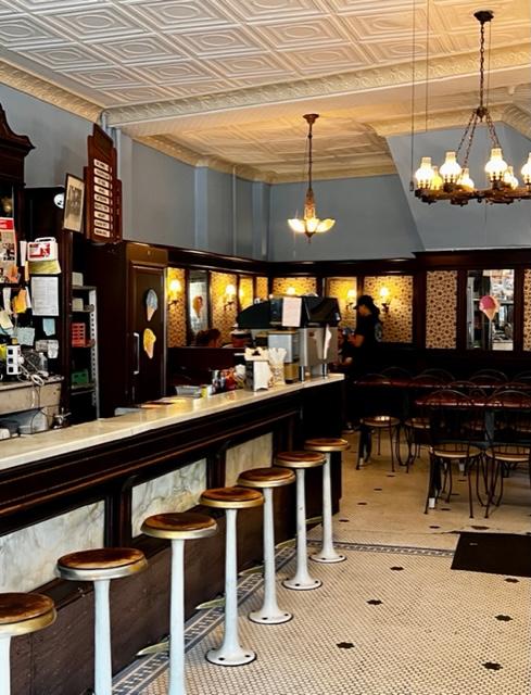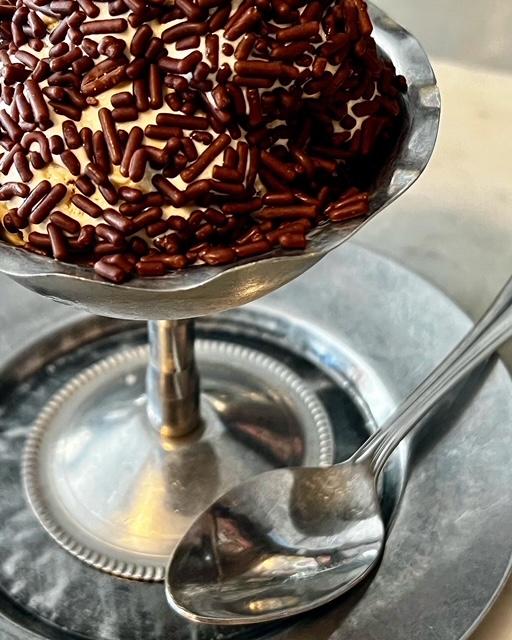 Eddie’s is an old fashioned ice cream parlor about to celebrate its 100th year in business. Eddie’s holds the current title of oldest ice cream shop in New York City! Its quaint charm comes naturally as both the interior and the ice cream have not changed much over the last century. I sat at the counter on an original wooden stool at the solid cool white marble counter that was there at the start. The coffee ice cream with chocolate sprinkles I ordered was served in a 100-year-old metal dish!