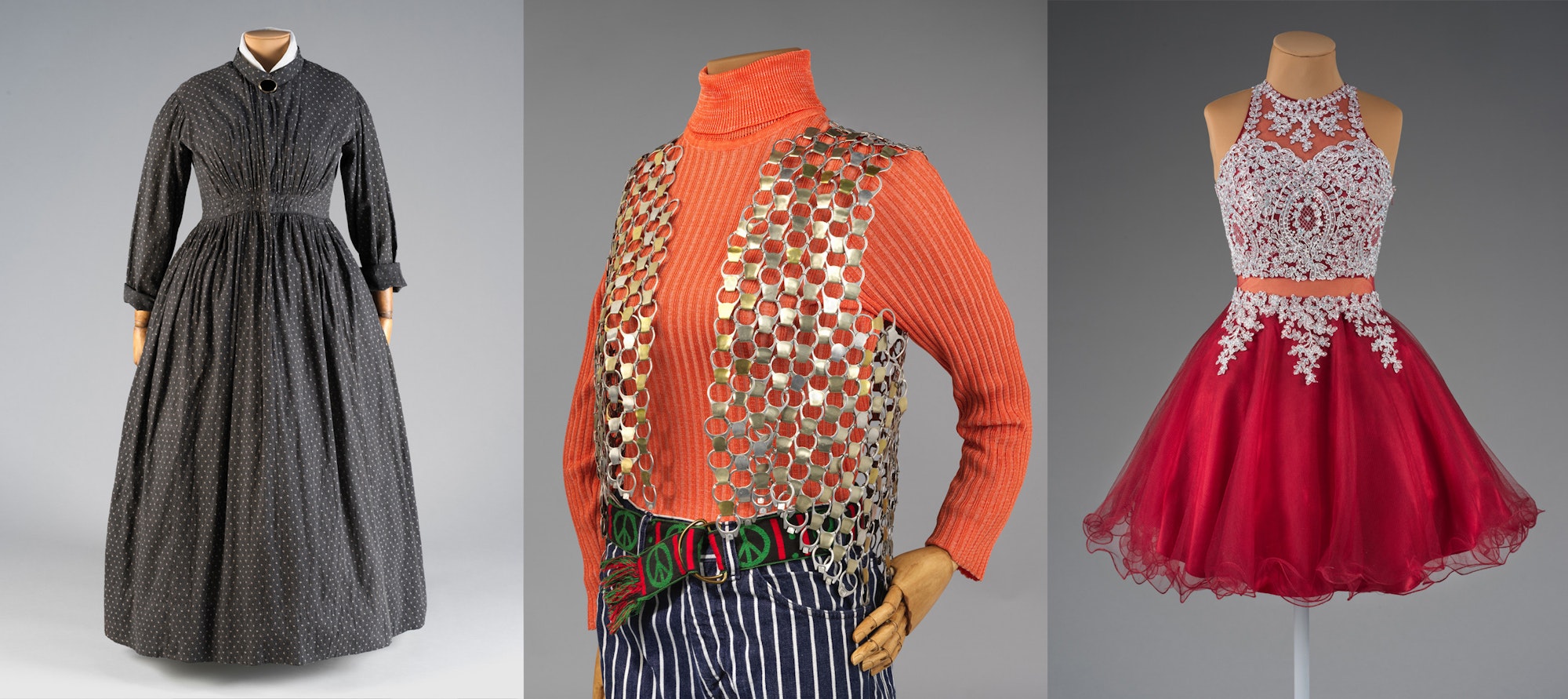 Each piece of clothing holds rich stories about the woman who wore it and who made it, the materials used, and the context in place and time. Whether homemade or ready-made, many of the garments on display are modest and inexpensive, rarely saved or displayed in a museum setting. Some are one-of-a-kind pieces; others are examples of clever making-do, and many are influenced by popular styles and trends of their era.