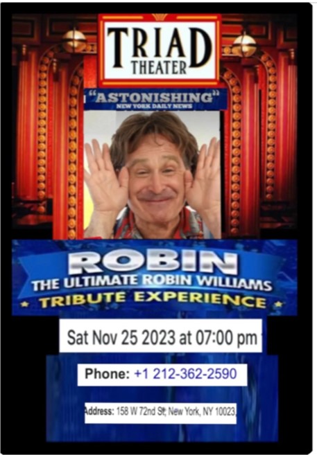 Actor/Comedian/Writer Roger Kabler is channeling the Spirit of Robin on stage + in his FILM “Being Robin.” This is said to be “the only show like it on the planet.” No one else has devoted their life and work to this degree to keep Robin alive somehow. People often tell Roger they feel Robin in the room , including Robin’s late friend CINDY WILLIAMS who hugged Roger after seeing his performance and commented that it was ‘ a joyous event and I feel Robin experiencing the laughter’. GET TICKETS.