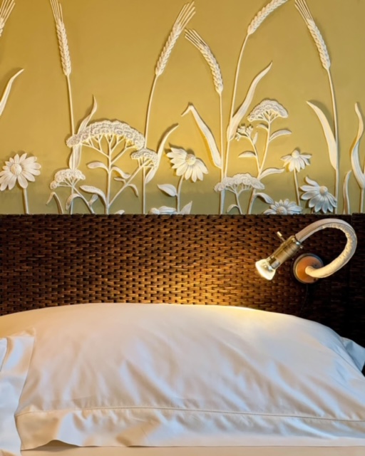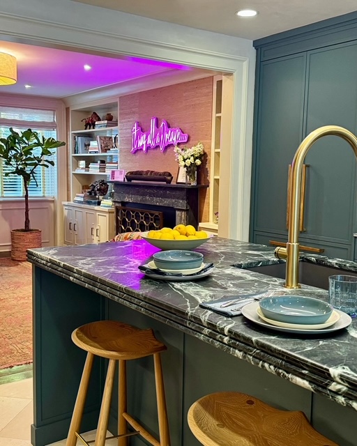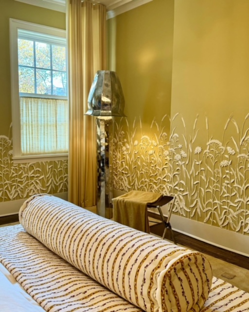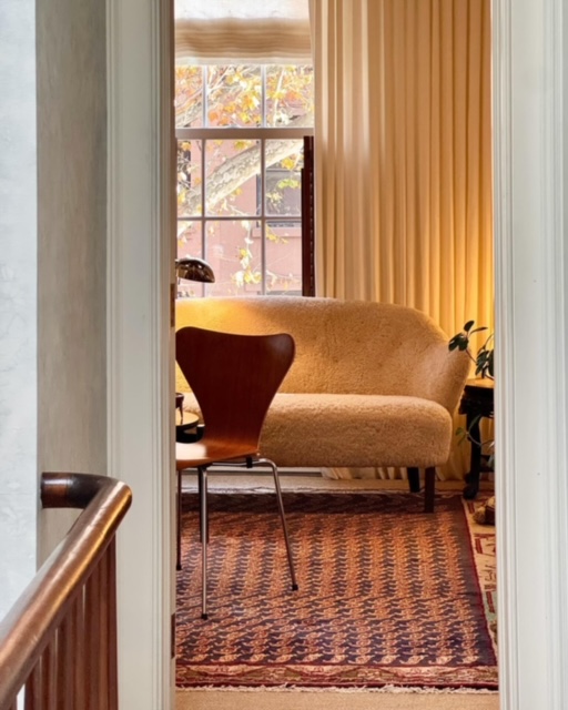 The unique primary bedroom walls are encased in custom plaster sheets reminiscent of the wheat grass the designer Lynn Kloythanomsup of Landed Interiors saw on her trip to the Cotswolds last summer. The application and the tones were also inspired by Wedgewood china. Although 182 Clinton Street is not the grandest home on the block, the selected designers did a fine job evoking current day living in Brooklyn Heights while respecting the charmed neighborhood’s past and the current functionality for the way New Yorkers live.
