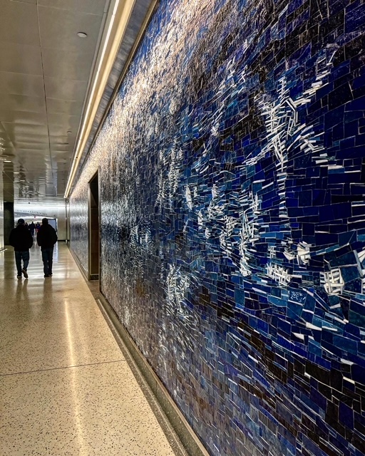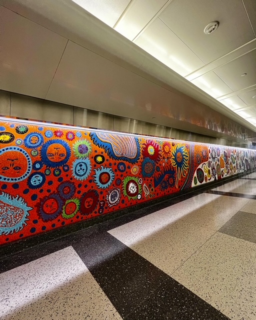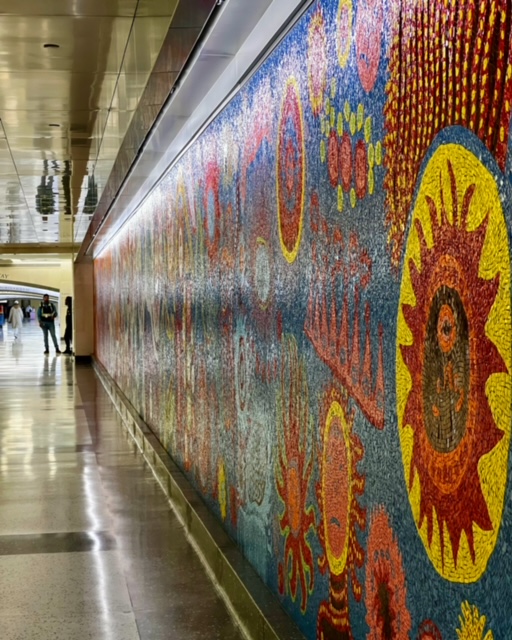 What drew me in to explore the new station without getting on a train was all of the magnificent artwork spread throughout the enormous terminal. The true masterpieces are multiple mosaic murals by artists Kiki Smith and Yayoi Kusama, as well as photographs from the International Center of Photography and video art.