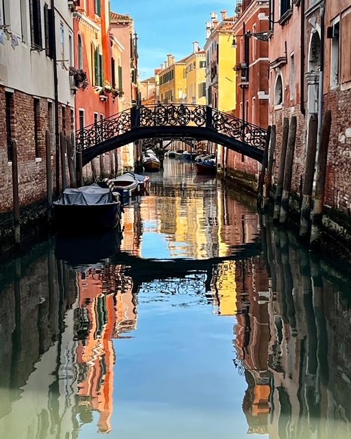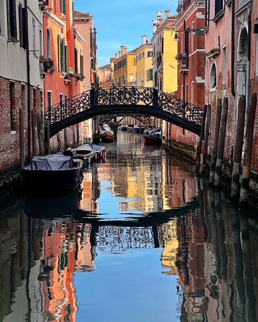 She writes, “I was fortunate enough to visit Venice, Italy, a city comprising 118 small islands, surrounded by canals and over 400 bridges. This “Floating City” is like no other in the world. Venice lends itself to photographers. This colorful, ancient and unique place has a special glow, and the waterways reflect the centuries old beauty all around. I was truly in heaven exploring this gem that thankfully serves the finest pasta and gelato!
