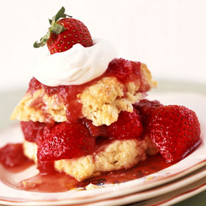 Spoon the whipped cream over each shortcake and top with a few more berries.