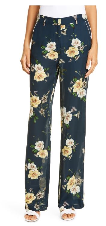 An antique floral print underscores the vintage charm of these flowy pajama-style silk trousers detailed with bright side-seam piping. $395. Nordstrom.