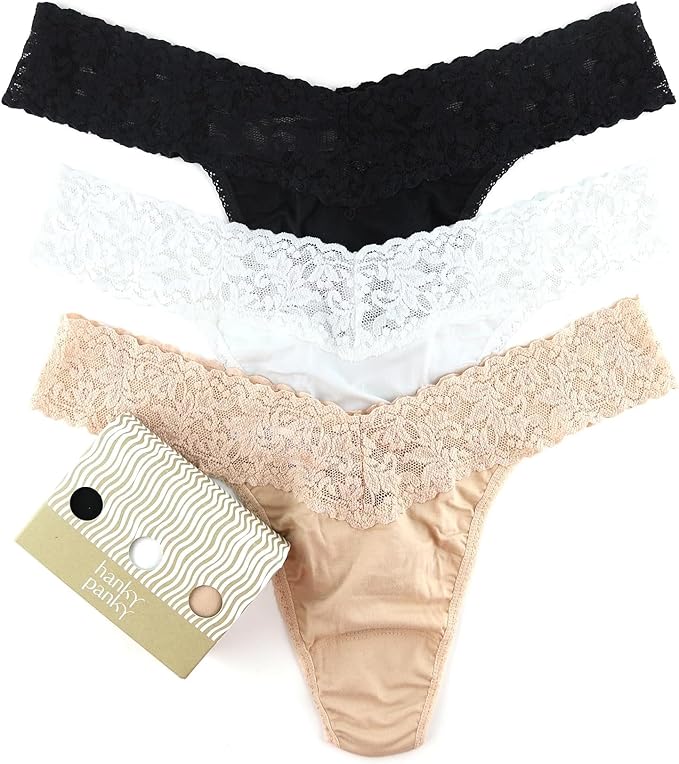 We have long been fans of Hanky Panky’s thong underwear. If you want line free panties, these are a great choice. A little on the pricey side, but worth it, and they last forever. 100% cotton, one-size fits all. 3 pairs for $72 on Amazon.
