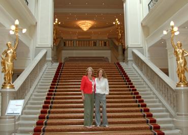 Here we are on the grand stair case of the Corinthia hotel (head tomoto, Cheryl (left) and Roni (tomato daughter and 3T partner.)