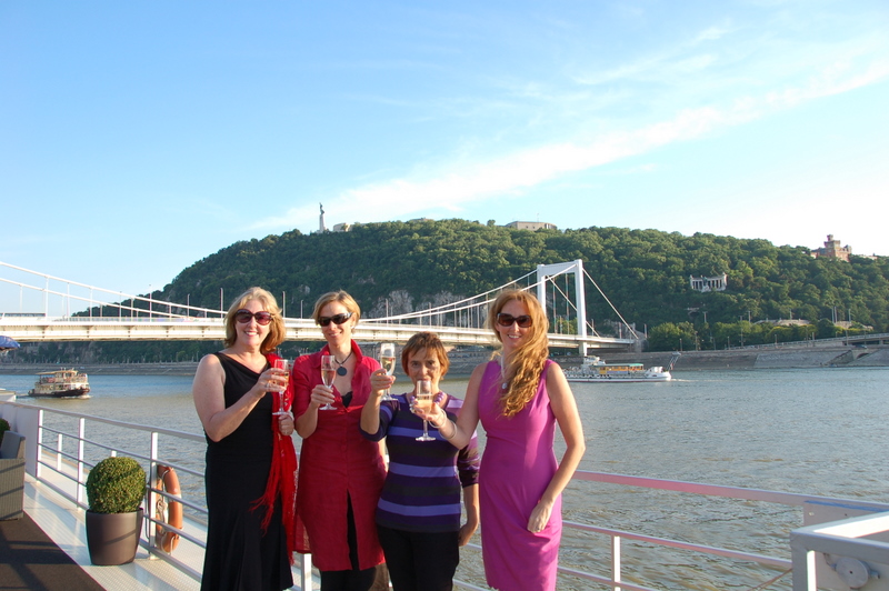 Here we are at the start of our boat cruise, toasting Budapest with our 3G Travel friends, Estzer and Zsuzsa in the middle.