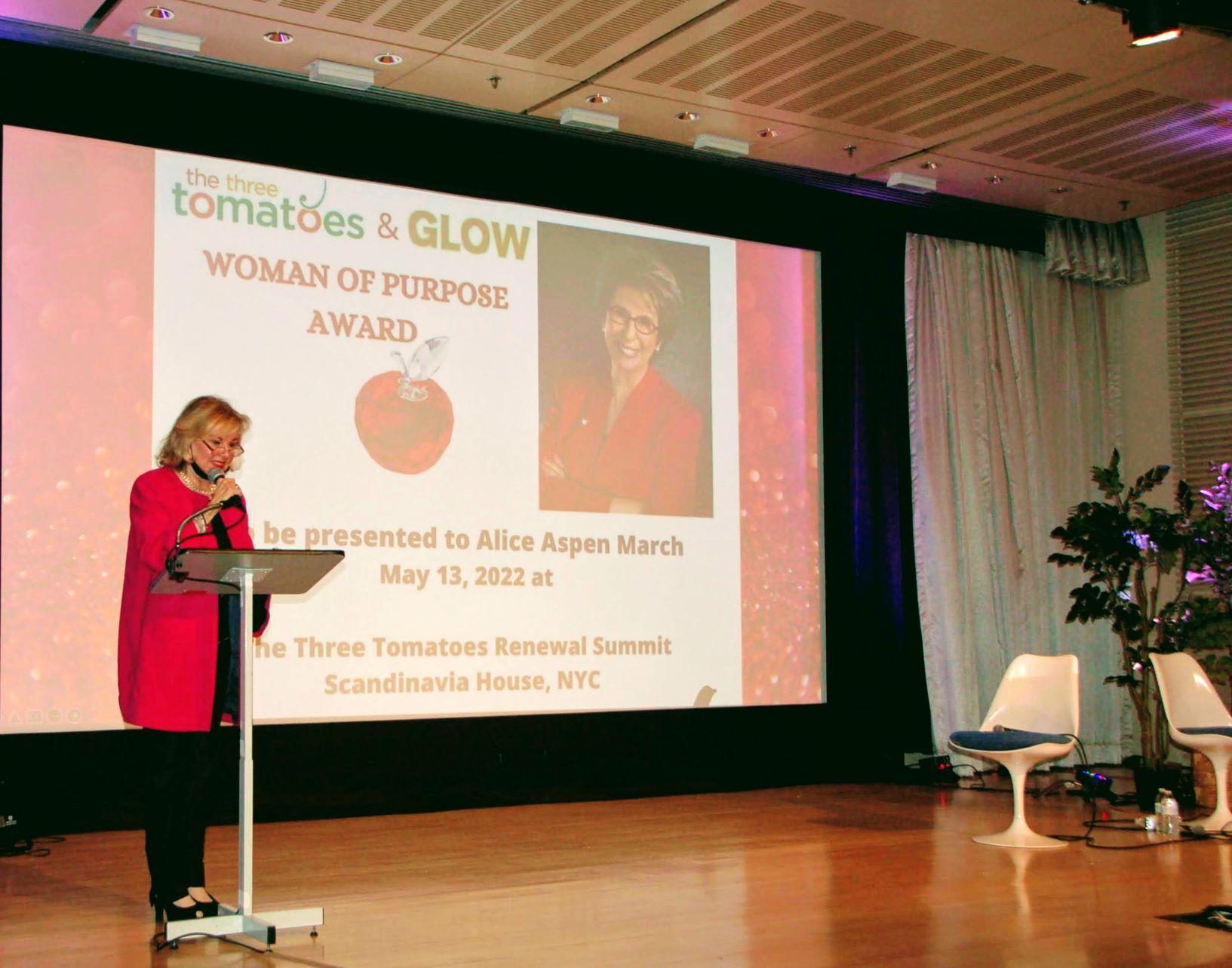 Congratulations to Alice Aspen March for receiving The Three Tomatoes & Glow Woman of Purpose Award.