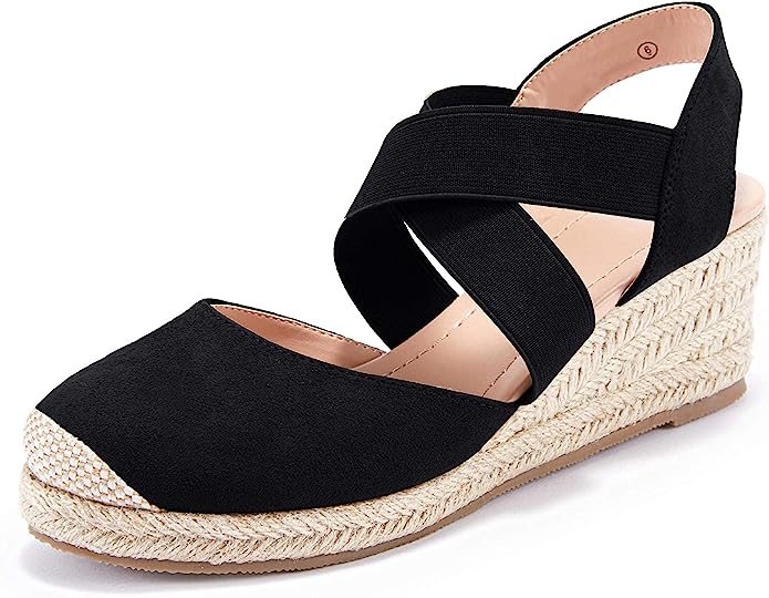 Cute comfortable summer black criss cross elastic strappy espadrilles wedges. $33.77 Amazon.