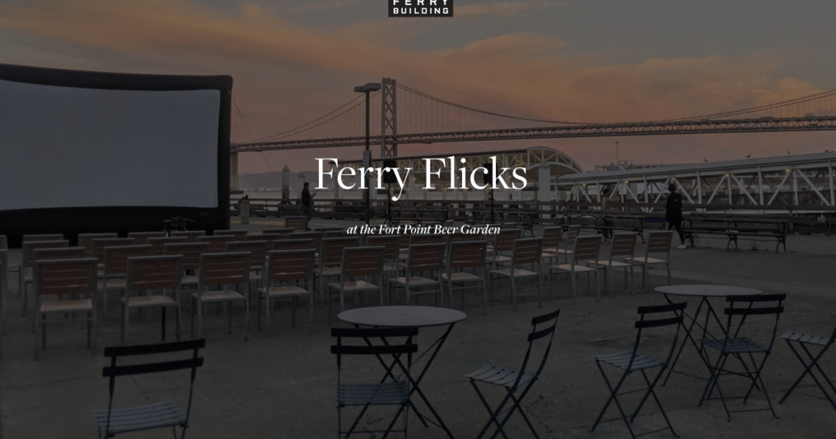 The Ferry Building is the place to be for outdoor flicks. The screen will be located on the Ferry Building North Plaza which is perfectly viewable from the Fort Point Beer Garden which is the location of this fun night out. Tickets include picnic table seating inside the Beer Garden and snacks. Happy hour is from 5 – 8 and additional food and bev will be available for purchase all evening.