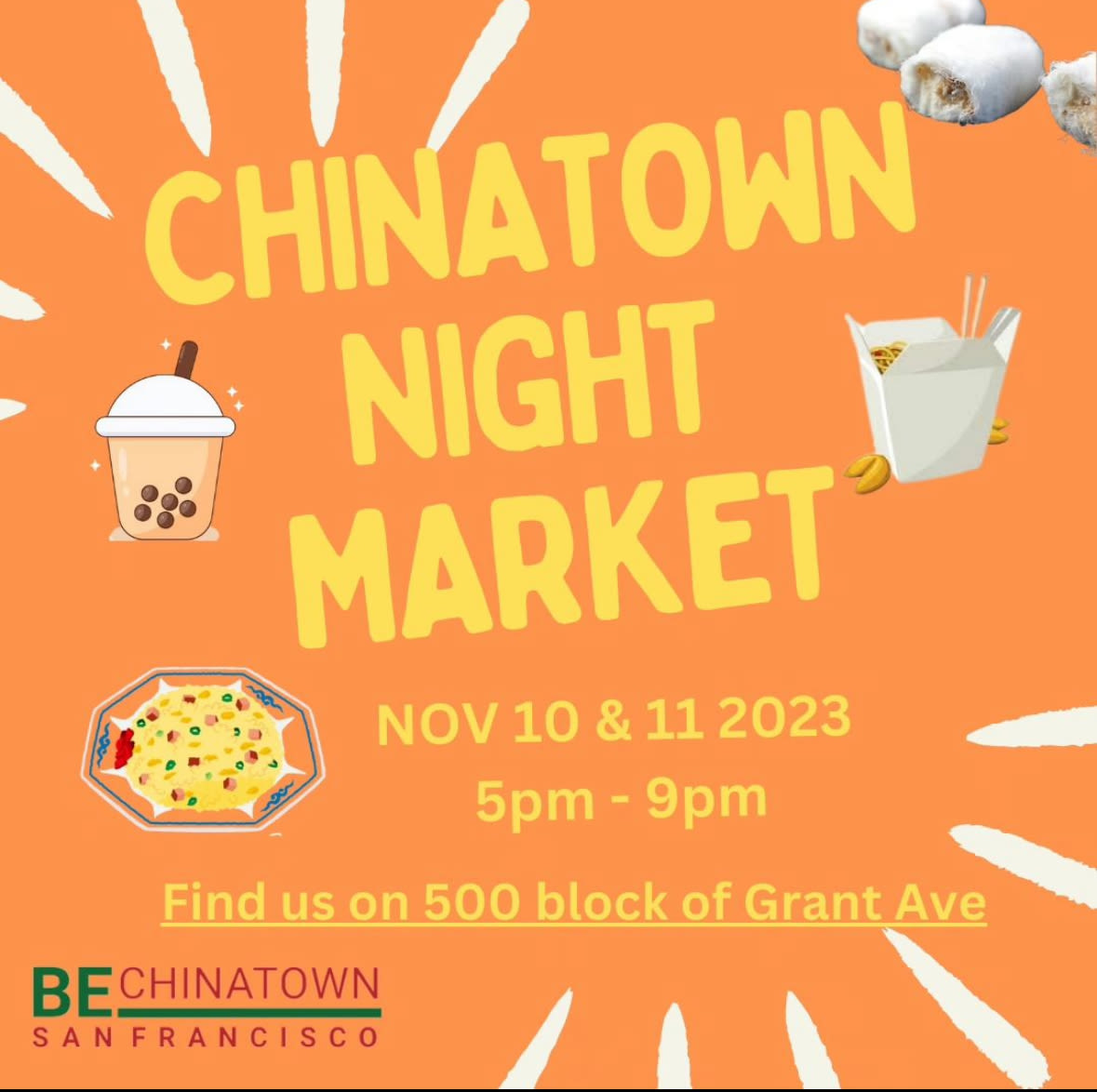 A brand-new night market is coming to San Francisco Chinatown, ahead of the APEC, the Asia-Pacific Economic Cooperation summit, which expects thousands of visitors to the City. The nonprofit BeChinatown is launching a two-day night market from 5-9 pm on Friday and Saturday, November 10-11, 2023. Local merchants will be set up along a two-block stretch of Grant Avenue between Pine and Sacramento streets. You can eat your way through Chinatown picking up egg tarts, BBQ pork buns, and additional pre-made Chinese favorites. However, unlike traditional Asian night markets, you won’t see any open flames. Vendors will be selling and serving only pre-made items; there will not be any on-site cooking at this event.