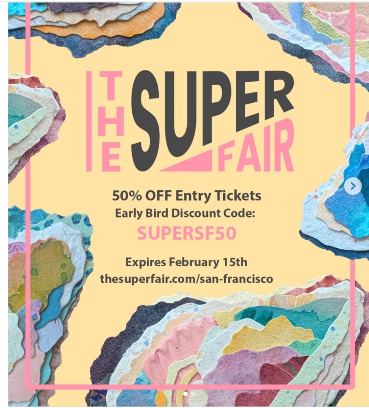 Indulge in 4 days of art from March 19 to 22 at Fort Mason. This fair will include more than 150 artists, dozens of installations, in-fair programs and opportunities to connect with creators from the Bay Area and beyond. The Superfair (formerly Superfine Art Fair) is a large-scale, accessible art fair featuring 180+ independent artists. Located at the Gateway Pavilion, it offers directly purchased, curated works, including painting and photography, along with performances, DJs, and themed opening nights. The event highlights a “disruptor” approach to traditional art fairs, designed to connect artists directly with buyers in a high-energy, vibrant atmosphere. If you don’t know where to begin, they offer a curator as a guide to assist you on your journey into the world of art collecting. This semiprivate tour will help you discover how to spot works that match your taste, connect meaningfully with artists, and navigate the buying process with confidence. Perfect for new collectors or anyone curious about the art fair experience. Limited to 20 participants per tour, so reserve your spot today! SUPERFAIR