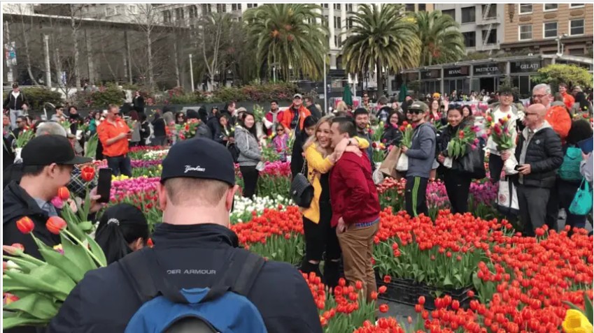 The Tulips are coming! Fresh flowers brighten every home. A colorful display of more than 80,000 tulips will cover Union Square, and you are invited to visit the square and pick your own bunch of tulips. The ”tulip garden” at Union Square will open to the public at 1:00 p.m. and it will be closed at 4:30 p.m. By that time, all 80,000 tulips will be picked giving many American households a wonderful feeling. TULIPS