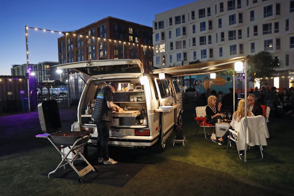 Diners are limited to parties of four people max, and every evening begins with appetizers and a welcome cocktail at folding chairs out front. Two dinner seatings are offered on select weeknights and weekends, and reservations are going fast. So if you have a special event coming up this summer, this may be your go-to spot! Stella is currently parked with regularity at Spark Social in Mission Bay, but a new partnership with the Ferry Building will allow Stella to roll up bayside as well. Prefer the roving restaurant to come to you? So long as you have a level 20-by-20-foot space to park and are located within 20 miles of San Francisco, Strong can set up Stella wherever you please. http://www.superstellavan.com